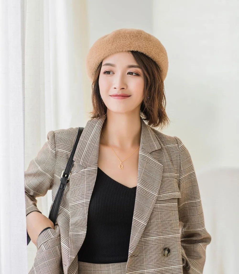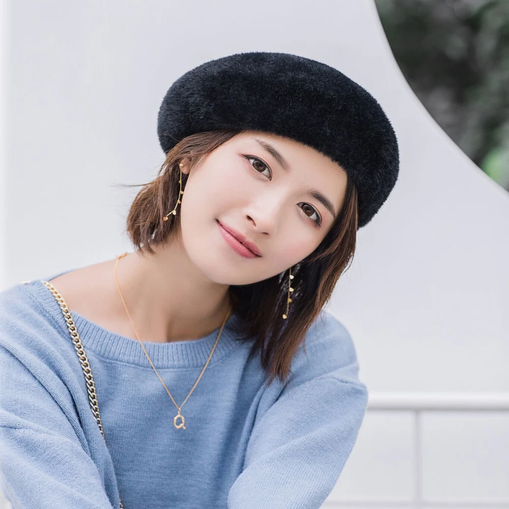 Женская шапка SILOQIN плюс бархатная утолщенная шерстяная береты осень-зима