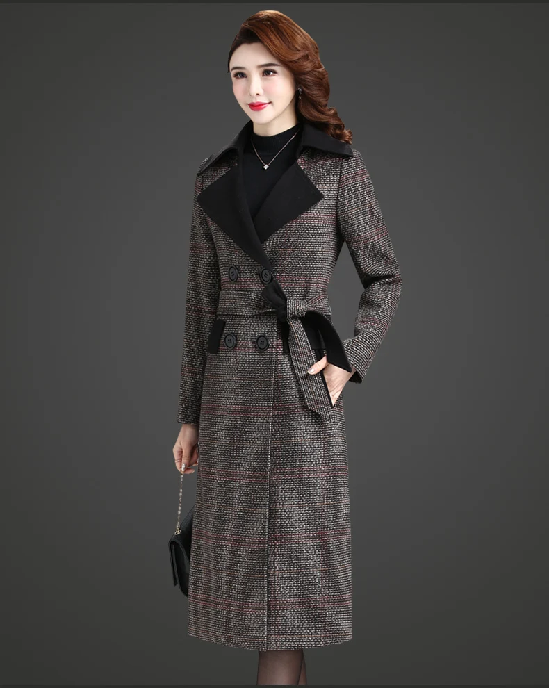 Женское пальто с длинным рукавом зимнее Осеннее шерстяное средней длины