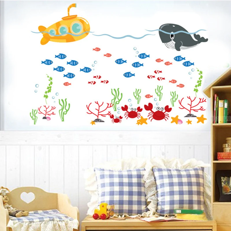 Мультяшные милые морские подводные киты DIY съемные настенные наклейки для детской комнаты, спальни, ванной комнаты, домашнего декора, настенные художественные наклейки