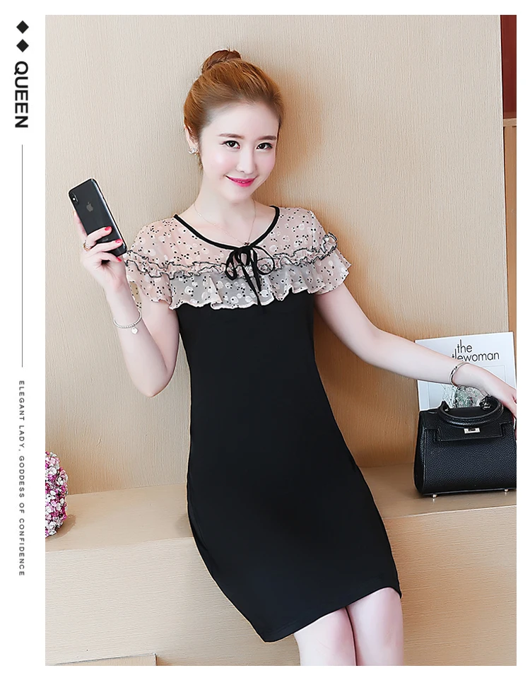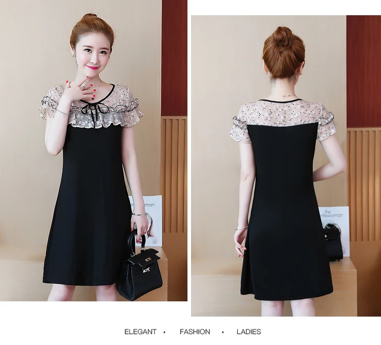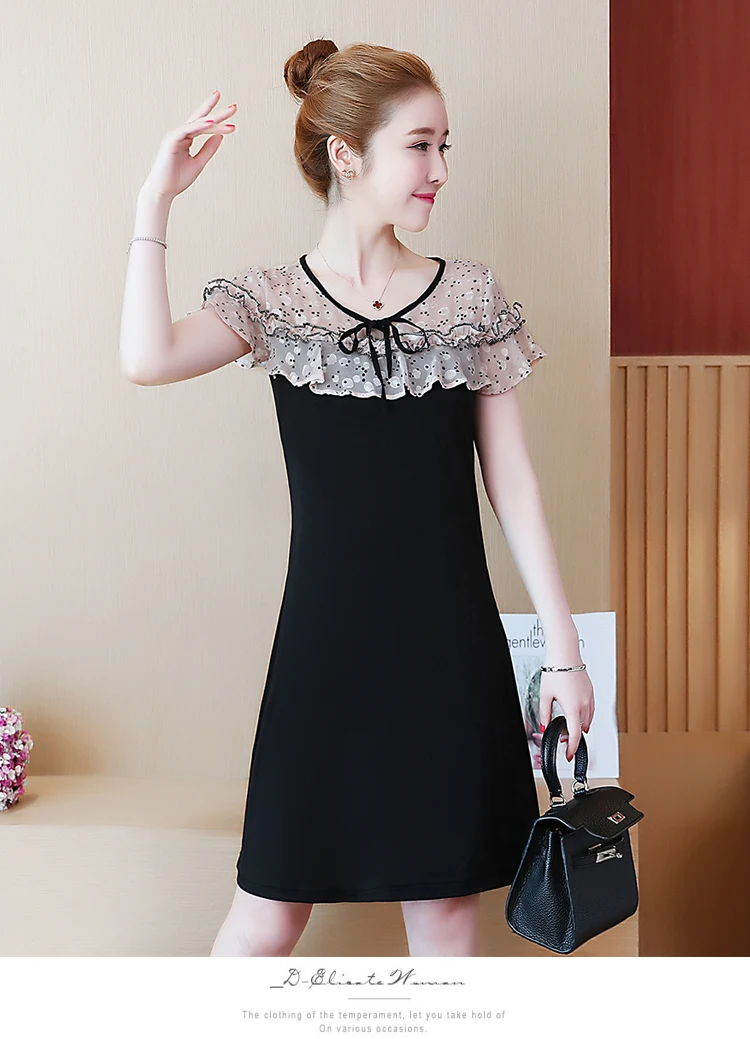 Женское Повседневное платье больших размеров, короткий рукав, летний школьный элегантный наряд, женские вечерние свободные платья, кружевная L-5XL