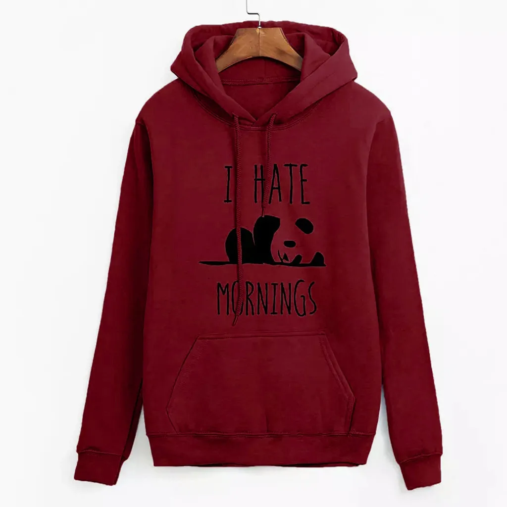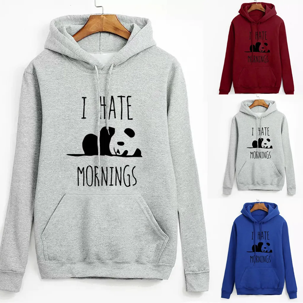 Женские осенние толстовки с капюшоном с принтом панды I Hate Morinings, Толстовка С Карманами, топы