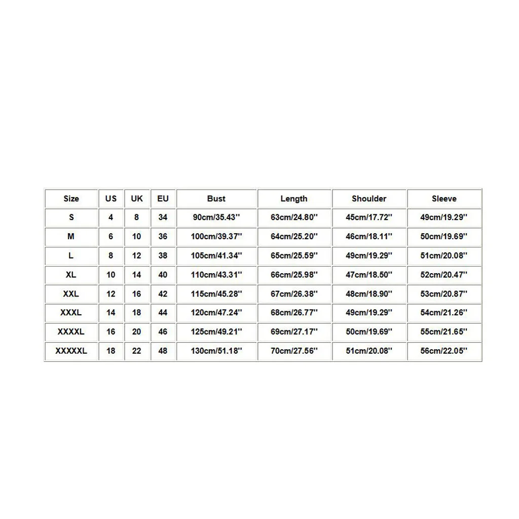 | Размер: XXXL | США: 14 | Великобритания: 18 | ЕС: 44 | Обхват груди: 120 см/47,24 дюйма | Длина: 68 см/26,77 дюйма | Плечо: 49 см/19,29'' | Рукав: 54 см/21,26 дюйма |