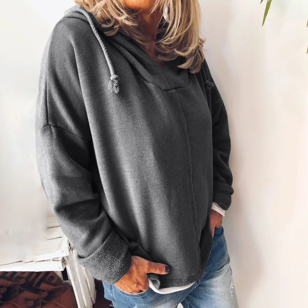 Большой размер женский модный Свободный Повседневный свитер с капюшоном и длинным рукавом
