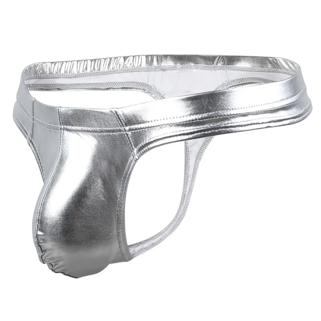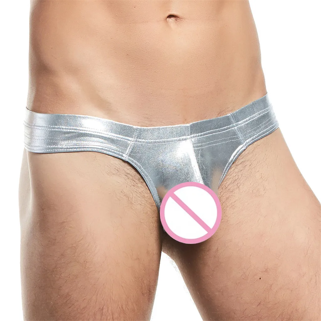 Мужские сексуальные стринги средней талией из лакированной кожи