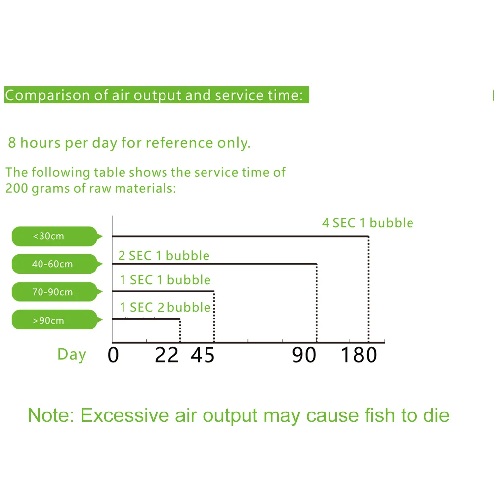 Большое количество СО2 может привести к тушению рыбы. Рекомендуется уменьшить объем CO2 в начале, 1 или 2 пузырька в секунду. Однократная реакция может длиться от 3 до 4 недель использования.