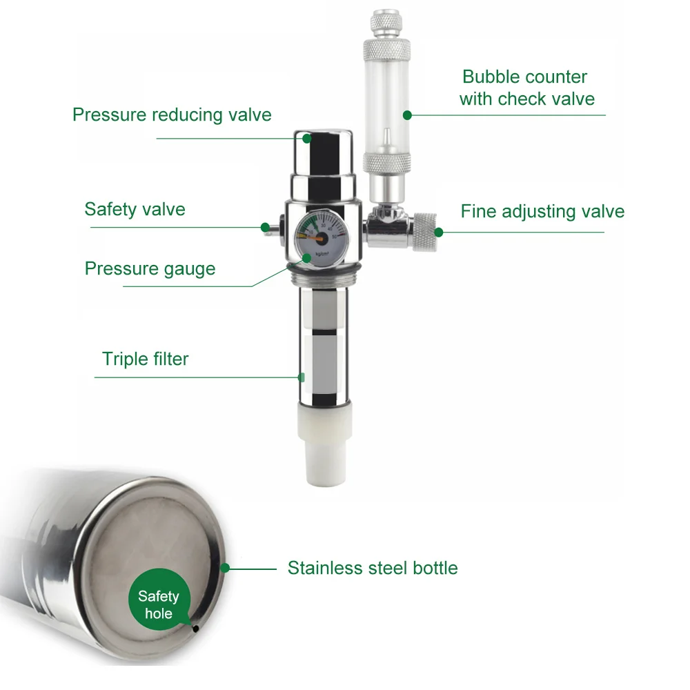 Профессиональная система генератора CO2 с бутылкой из нержавеющей стали, лучше, чем простые генераторы пластиковых бутылок. Он более надежный, устойчивый, прочный и эффективный.