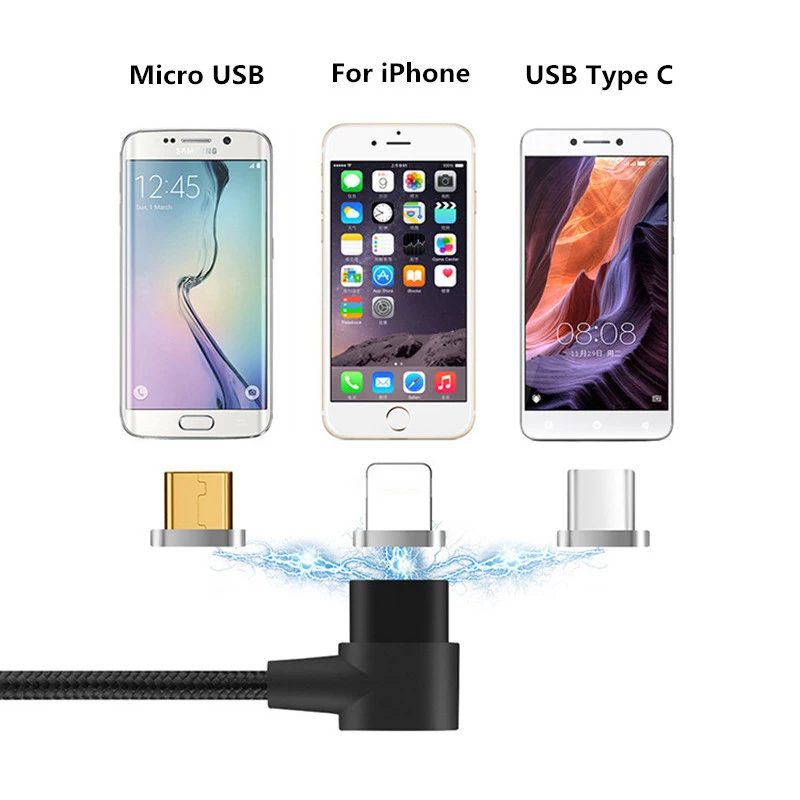 Магнитный кабель на 90 градусов, Micro USB Type-C, кабель для быстрой зарядки и передачи данных, нейлоновый USB кабель, Магнитный зарядный провод для iPhone 11 X xiaomi