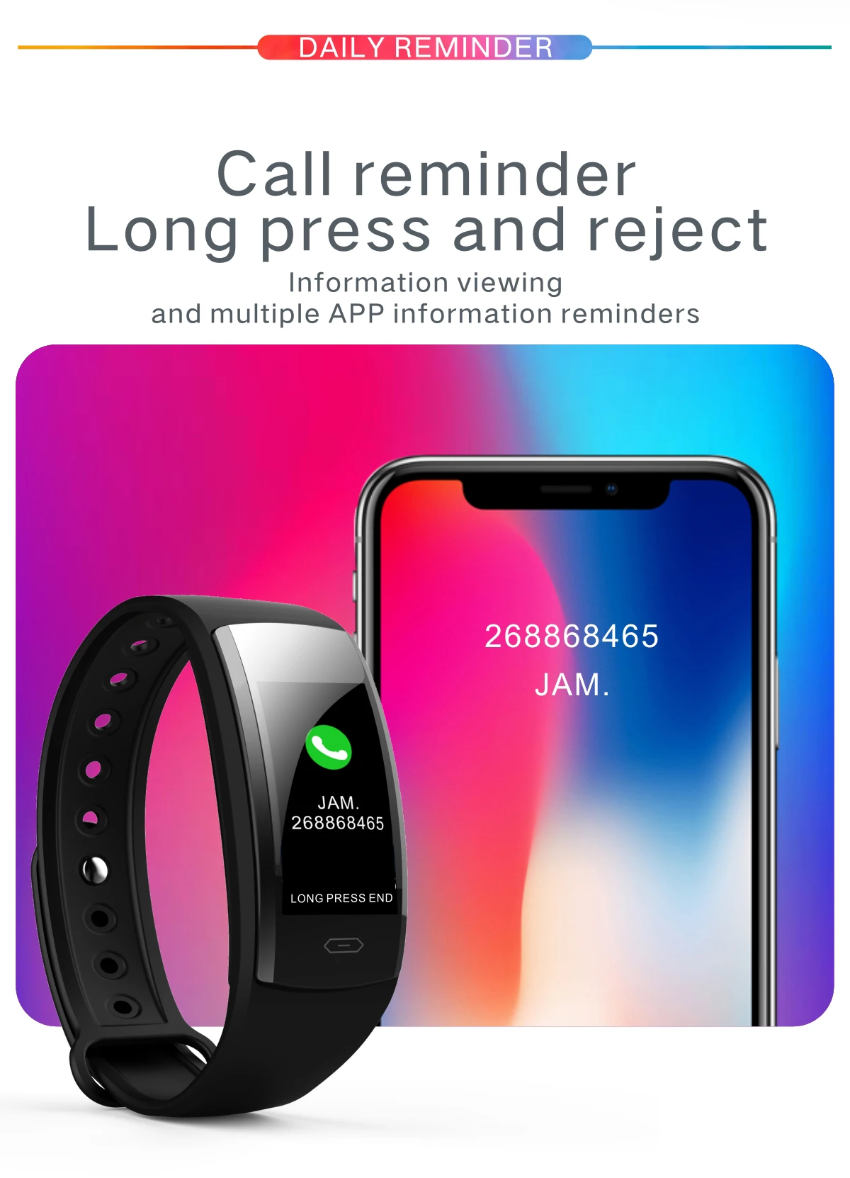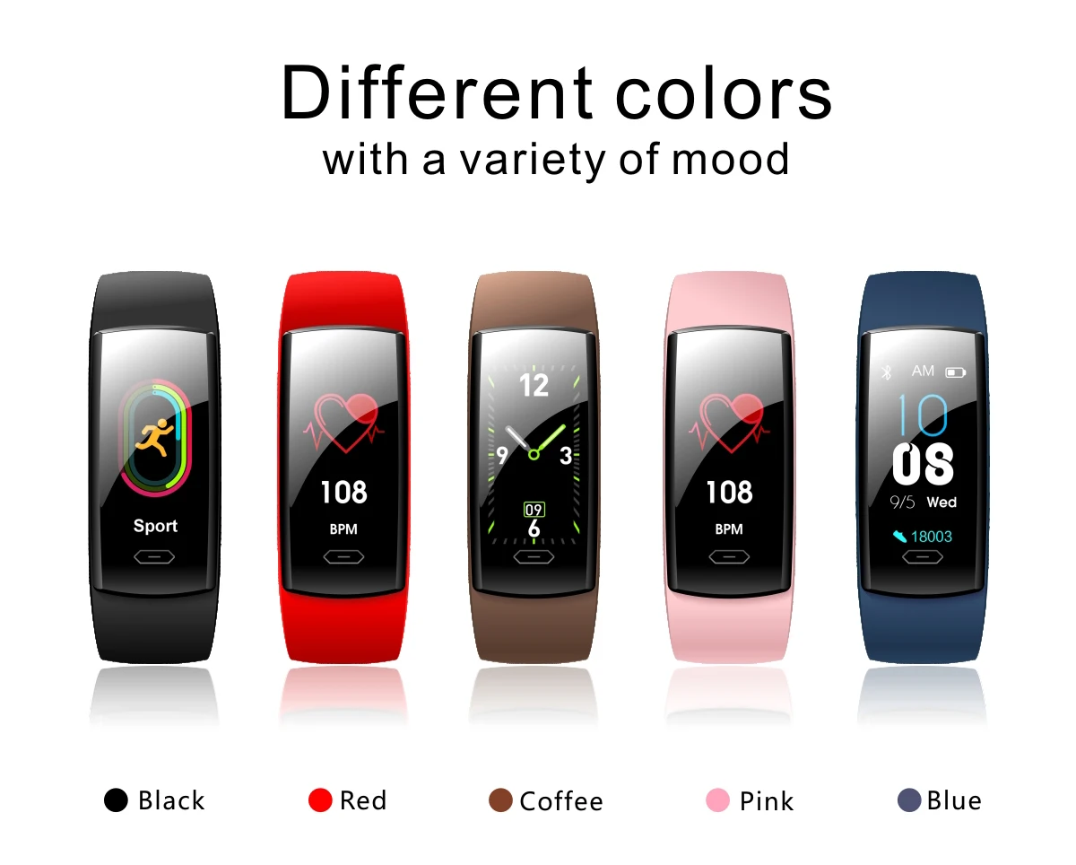 Процессор Nordic52810 Экран дисплея 0,96 дюйма, TFT, высокое разрешение Сенсорный экран, сенсорная кнопка Bluetooth VER4.0 Датчик сердечного ритма lst1303 Трехосевой датчик LIS3DH Полимерные аккумуляторы большой емкости, 90 мАч G-SENSOR Функция: шагомер, напоминание о сидячем положении, мониторинг сна, мониторинг сердечного ритма, сенсорный контакт Поддержка системы: Android и IOS Функция параметр Поднимите руку на экране, входящий вызов, вибрационное напоминание + дисплей, SMS, вибрационное напоминание + дисплей, мониторинг сердечного ритма, тест на артериальное давление, дисплей часов, будильник, вибрационное напоминание Шагомер, шаг движения, подсчет расхода калорий, запись пробега Функция напоминания о необходимости двигательной активности поддержка Не беспокоить режим поддержки Найти опору для браслета Контроль сна, контроль качества сна Другие функции QQ/WeChat/Facebook, WhatsApp и другие напоминания Параметры внешний вид Цвет черный, розовый, синий, коричневый, красный Материал корпуса: АБС-пластик + Поликарбонат, ремешок: ТПУ Размер машины 44,5 мм * 20,8 мм * 11,5 мм Размер ремешка 245 мм Вес машины 22 г Степень водонепроницаемости IP67 Посылка Размеры 87*127*30 мм Посылка весом 58 г