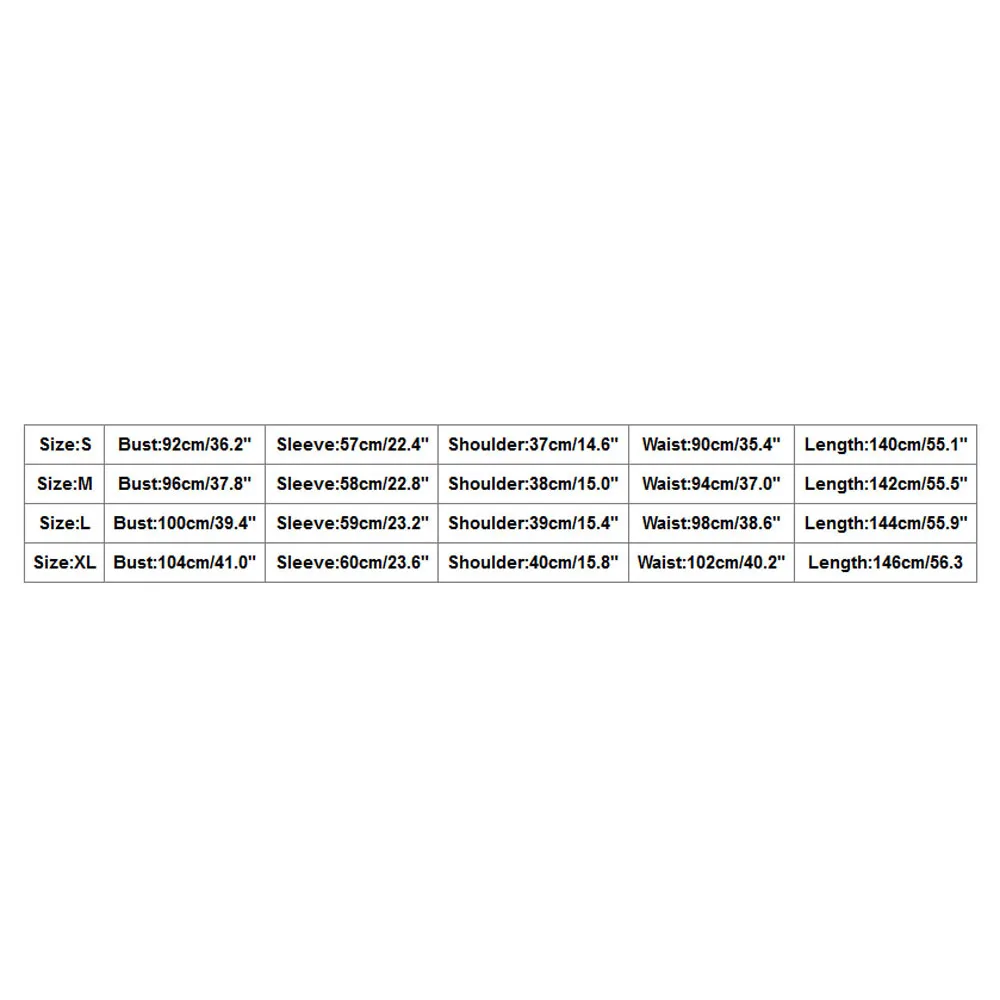 | Размеры: L | Бюст: 100 см/39,4" | Рукав: 59 см/23,2" | Плечо: 39 см/15,4" | Талия: 98 см/38,6" | Длина: 144 см/55,9" |
