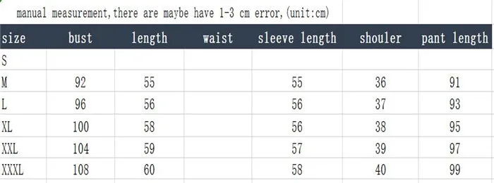 Таблица размеров
