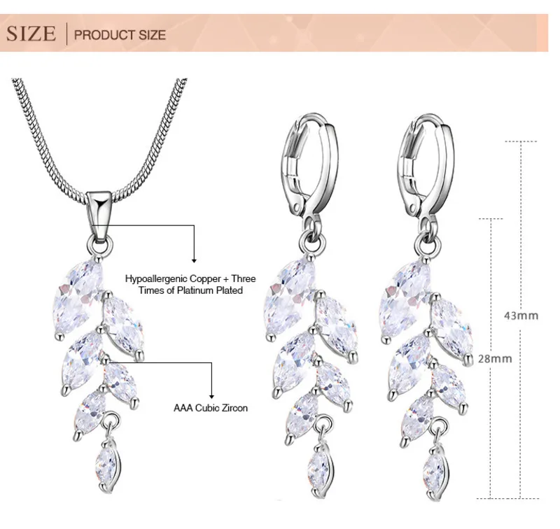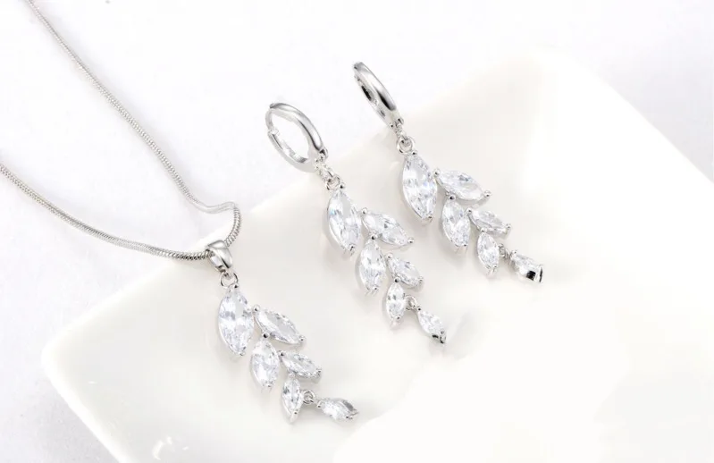 Модные наборы свадебных ювелирных изделий с кубическим цирконием, 3 А, Роскошная подвеска в форме листа с кристаллами, ожерелье, серьги для женщин, Свадебный комплект ювелирных изделий