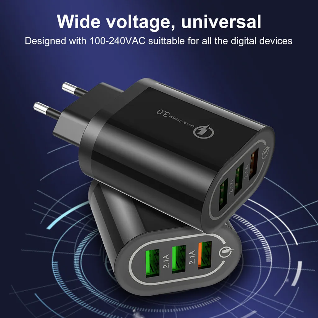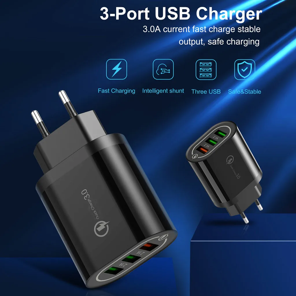 Быстрая зарядка для EU 18 W QC 3,0 5 V/2A 3-USB зарядное устройство для путешествий источник питания