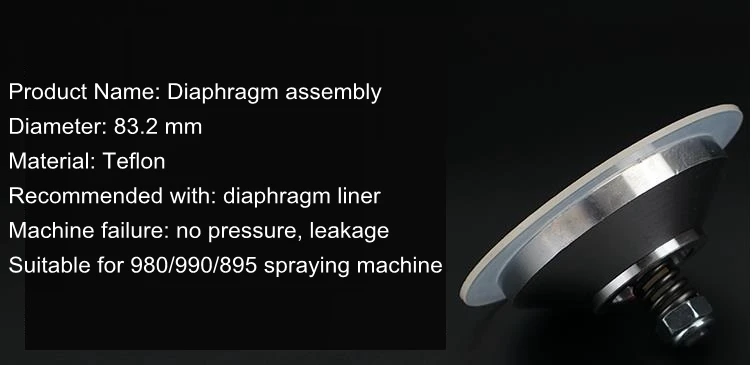 Название продукта: сборка диафрагмы Диаметр: 83,2 мм Материал: тефлоновое покрытие Рекомендуется носить с вкладыш диафрагмы Поломка аппарата: никакого давления, утечки Подходит для 980/990/895 машина для горячего распыления Посылка включает в себя: товар такой, как выбрать