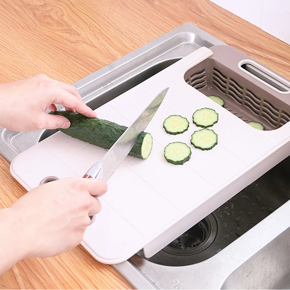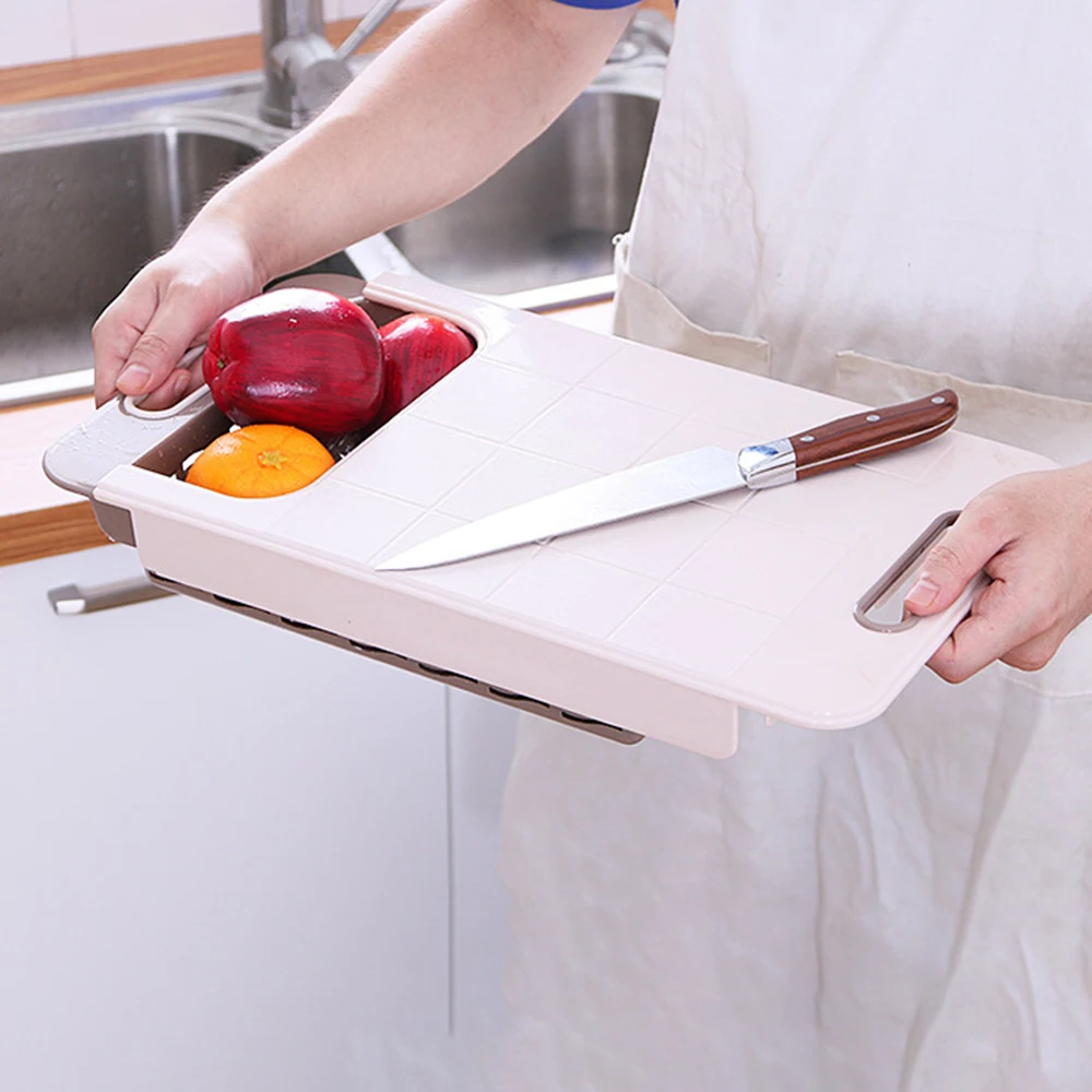 Утолщенная многофункциональная кухонная разделочная доска для хранения, выдвижная Нескользящая моющаяся разделочная доска для фруктов и мяса 30