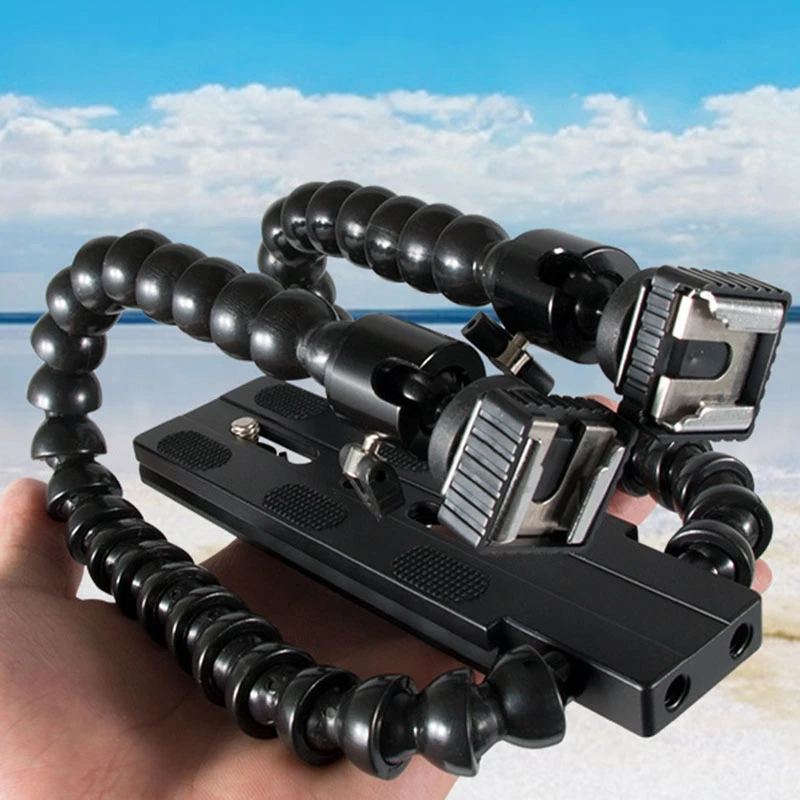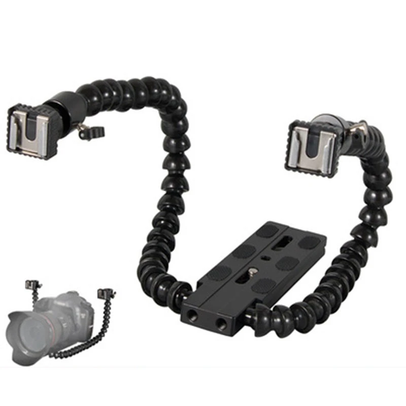 Дизайн для макросъемки. Он имеет две руки с креплением вспышки, свободно искажать под любым углом