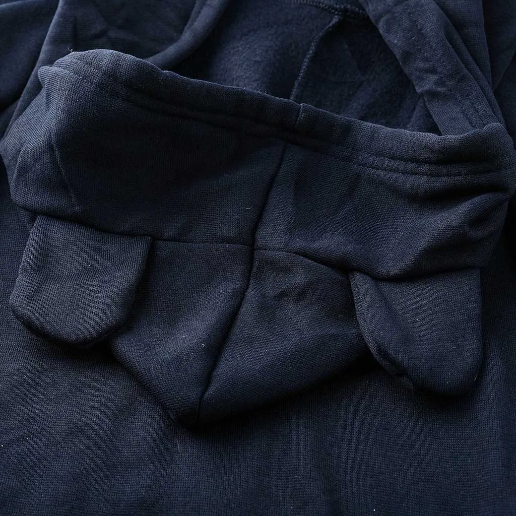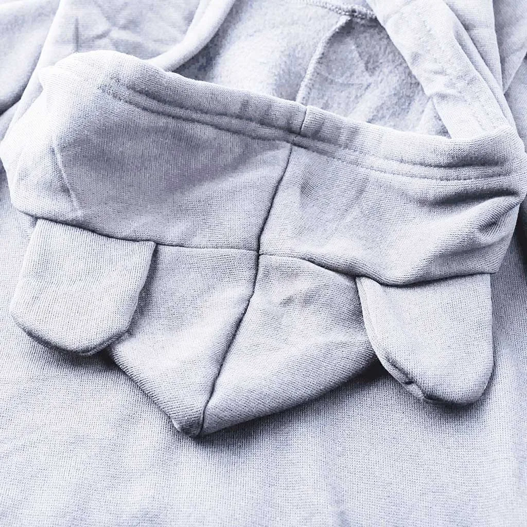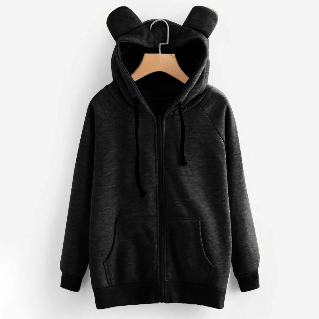 Женская мода сплошной цвет принт кошачьи уши молния карман длинный рукав пуловер пальто