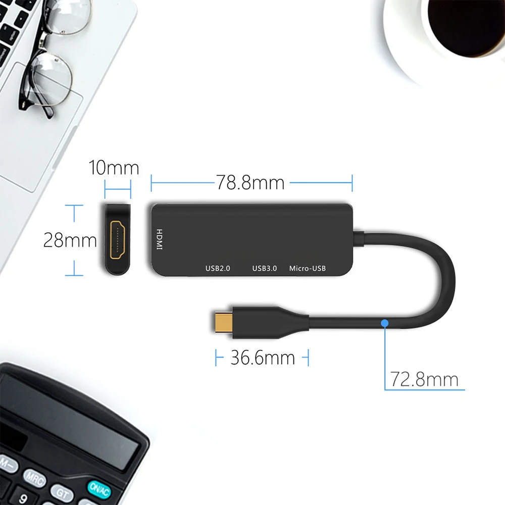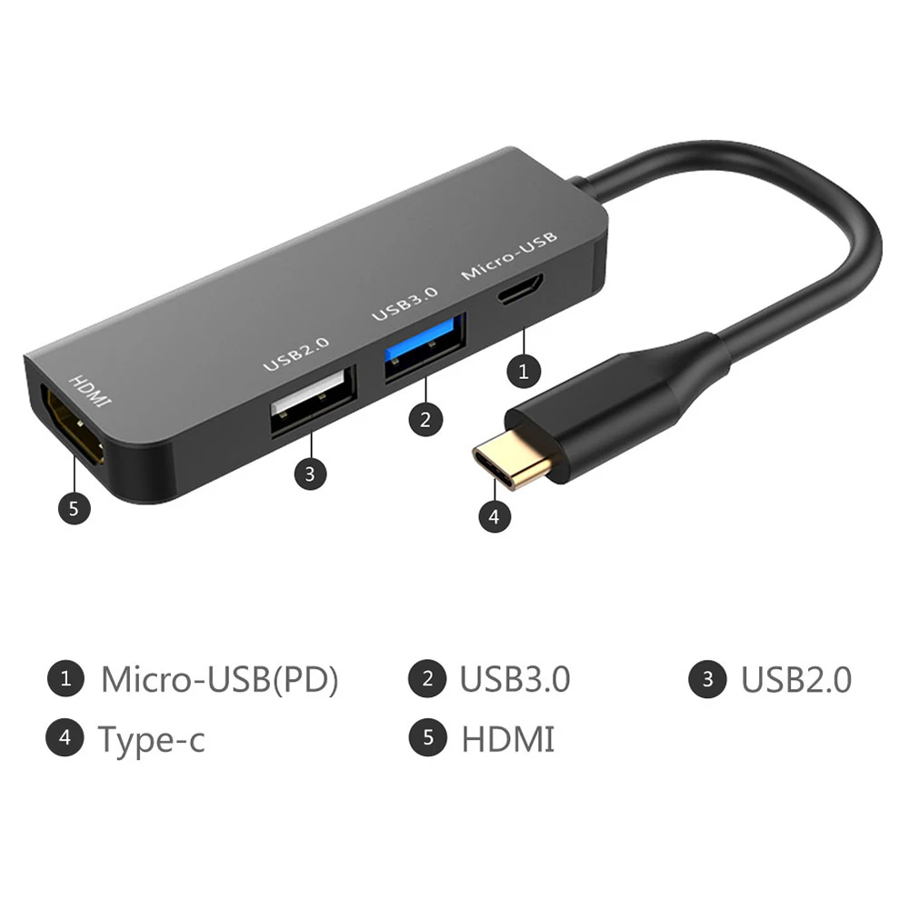 Порт зарядки Micro USB для смартфона/планшета: все USB C смартфона и планшета имеют только один порт USB c, при использовании этого концентратора для выхода HDMI порт зарядки Micro USB поможет зарядить ваш смартфон/планшет