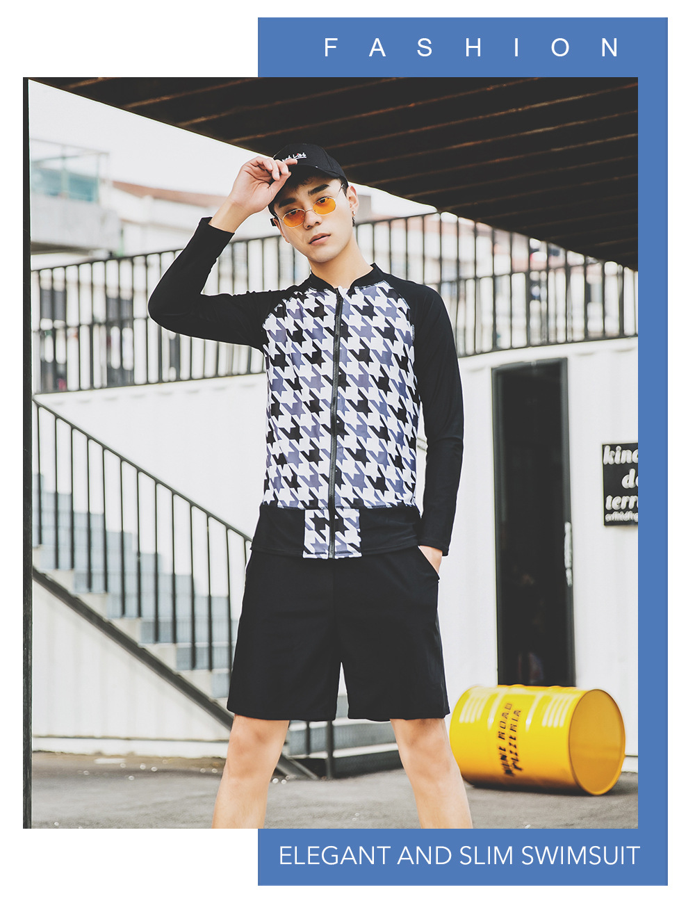 Мужской комплект из 2 предметов с длинными рукавами с защитой от сыпи/купальный костюм