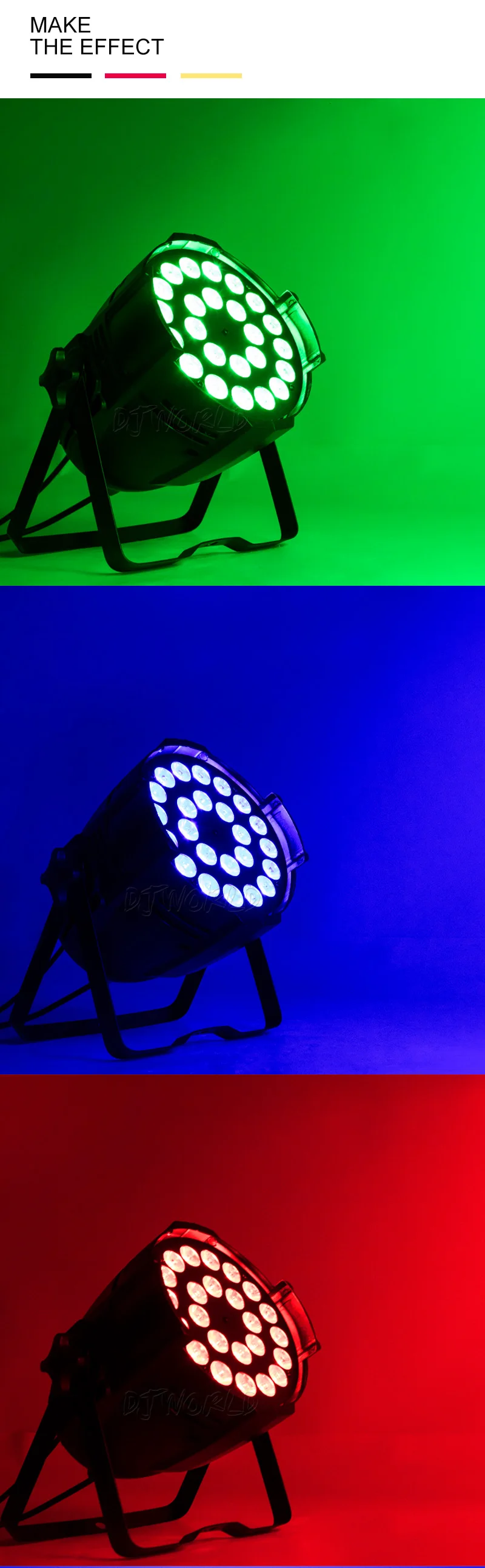 1. Потребляемая мощность: 288 Вт, 432 Вт 2. Мощность: AC90--275V, 50 -- 60 Гц 3. Фиксированная лампа: светодиодный 24x12W RGBW 4 в 1, светодиодный 24x18W RGBWA + UV 6 в 1 4. DMX-Каналы управления: 4/8 каналов DMX, 6/10 каналов DMX 5. Режим управления: DMX512, управление звуком, независимый, стробоскоп 1-100 Гц 6. Челнок: частота вспышки: 0-10 Гц 7. Угол свечения: 40 градусов 8. Конструкция: литой алюминиевый каркас, сотовая конструкция, Высококачественная система охлаждения 9. Диммер: механический Диммер 0-100% 10. Длительный срок Светодиодный да (более 60000 часов) 11. Гарантийный срок: 1 год 12. Сертификат: CE, ROHS, SAA и UL 13. Вилка: отправляется в соответствии с требованиями вилки, Европейской вилки, вилки США, вилки Австралии, вилки Великобритании и т. д. 14. Использование помещений: сценариев, дискотек, дискотек, отелей, магазинов, семейных дней рождения, подходит для ди-джеев. 15. Вес нетто: 2,15 кг 16. Вес брутто: 2,65 кг 17. Размер упаковки: 23x22,6X27 см 18. Размер изделия: 23x21x22 см