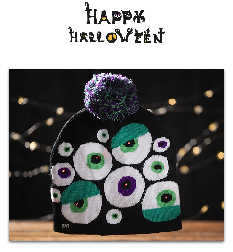 2019 Новогодняя шляпа на Хеллоуин, светящаяся забавная шапка с привидением, шапка для взрослых мальчиков и девочек, вязаные вечерние Необычные теплые 5 цветов