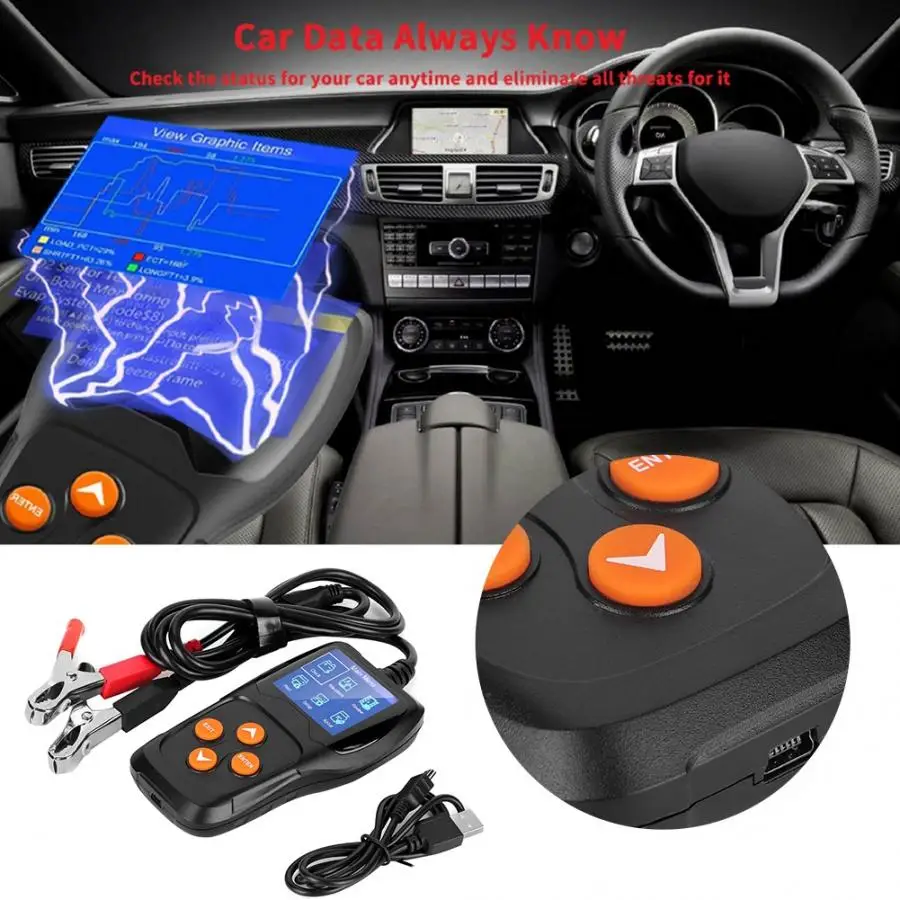 Функция: для тестирования различных батарей 12 В (Пуск {SLI}, глубокий цикл и морская) Влажная (вода), VRLA или без обслуживания (MF), без обслуживания уплотнения (SMF), абсорбирующий стеклянный коврик (AGM), EFB и гелевые клетки.