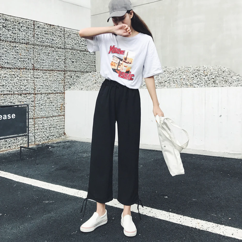 New Arrival 2019 Summer Autumn Streetwear Pants Women Elastic High Waist Sweatpants Baggy Pants Casual Harlan Shiffon Pant