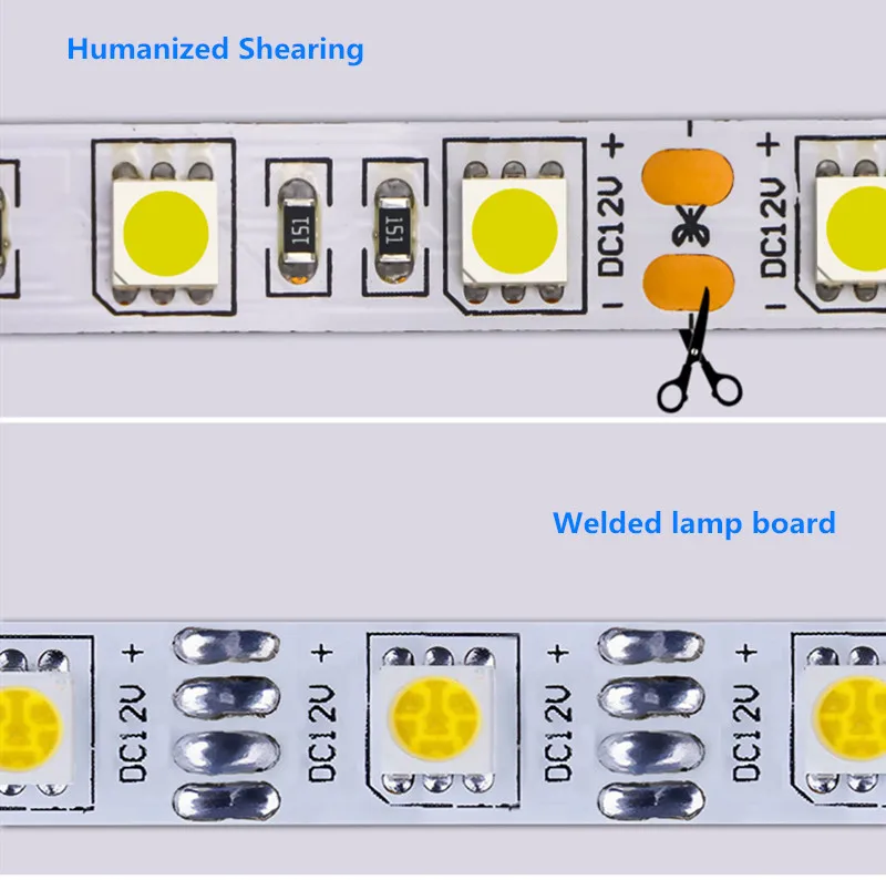Превосходный правый 5050 SMD светодиодный, высокая интенсивность и надежность. Длительный срок службы 50000 часов Непрерывная длина, упаковано с 0,5/1/2/3/4/5/10 метров. Гибкая лента для изгиба вокруг изгибов Полностью гладкий и ровный светильник, решение проблемы неровного освещения Ультра-яркий, но работает при низкой температуре Низкое энергопотребление