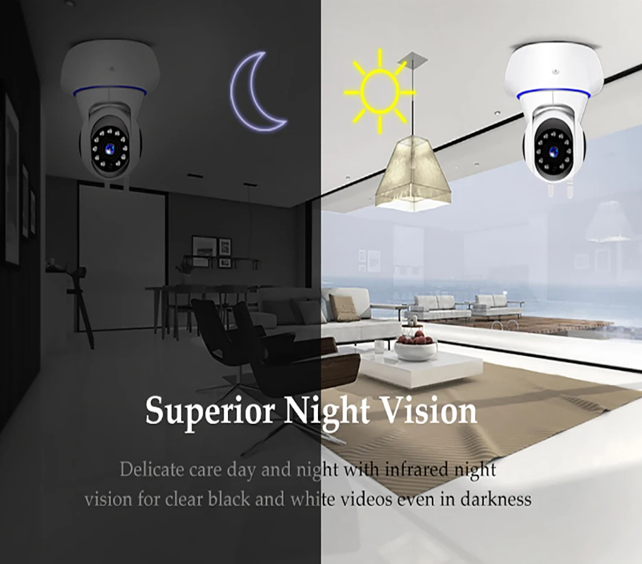 Main Features: 1.HD real 2.0 megapixel 1080P(1920*1080) resolution 2.View simultaneously for Remote 10 at most devices 3.Easy to set connect Wi-Fi (WiFi not supported 5G) 4.Support AP Mode (No network can be used) 5.Clear two way audio and talk back 6.Motion detection: send email message,recording video 7. Clear Night Vision 8. Pan 355 degree, tilt 110 degree 9. Support SD card recording and play back easily.