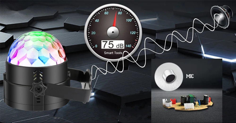 Встроенный высокочувствительный микрофон мерцает с ритмом музыки.