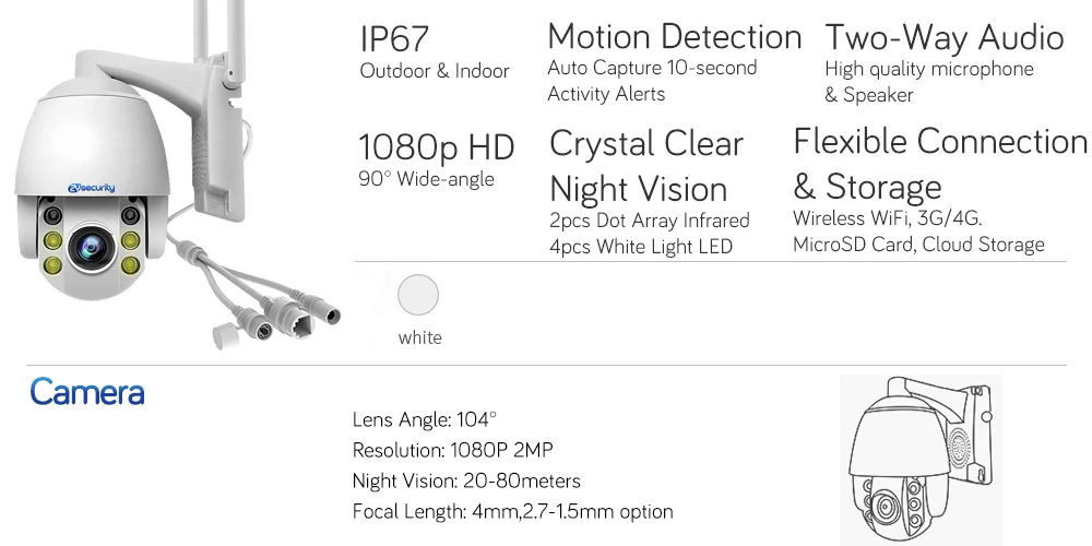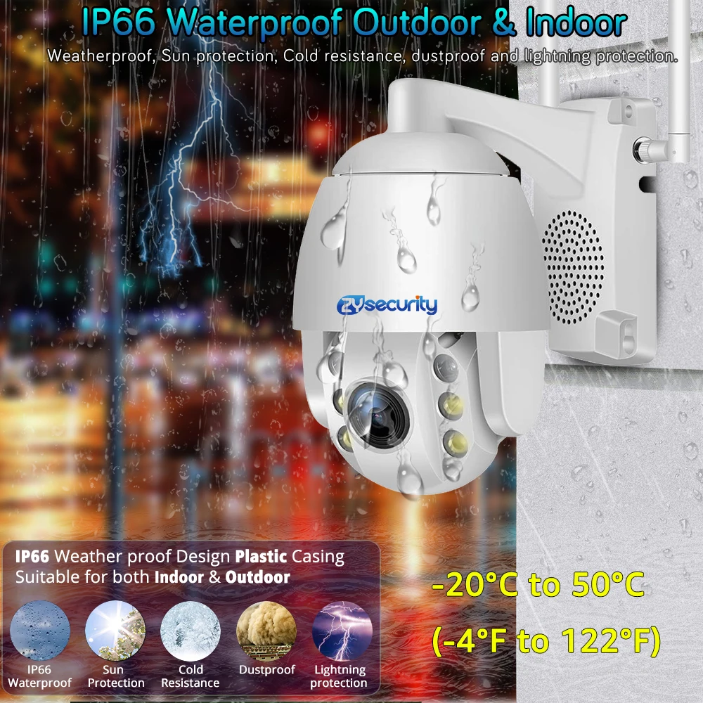 ZYsecurity outdoor 4G Speed Dome PTZ camera ZY-4GPTZ1 is smart camera with color night vision, has 3 mode night vision can setting in App. when night falls it automatically switches to night vision mode in low light conditions, with a wider range of night vision and better definition. Intelligent dual-light color night vision, IR distance 20Meters, White light distance 80meters.