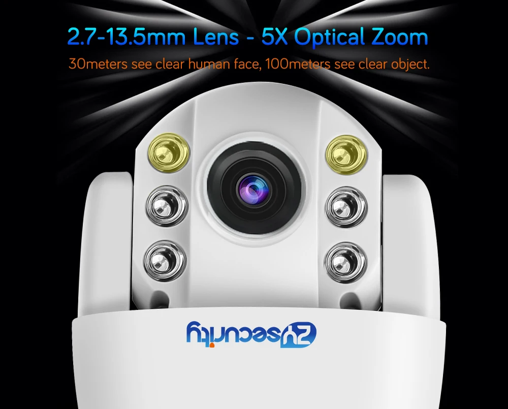ZYsecurity outdoor 4G Speed Dome PTZ camera ZY-4GPTZ1 built in 2.7-13.5mm 5X auto zoom auto focus lens, enlarge to see far away details crystal clear.