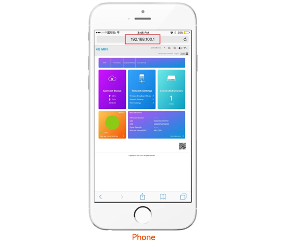 If the 3G/4G camera is offline, please check the SIM card. Use the mobile or PC to connect the WIFI"MIFI_3F41", the password is 1234567890, you can find the Wifi when the camera starts working, access camera's IP address "192.168.100.1" through the browser, the page password is "admin", you can check the SIM card information on this page: