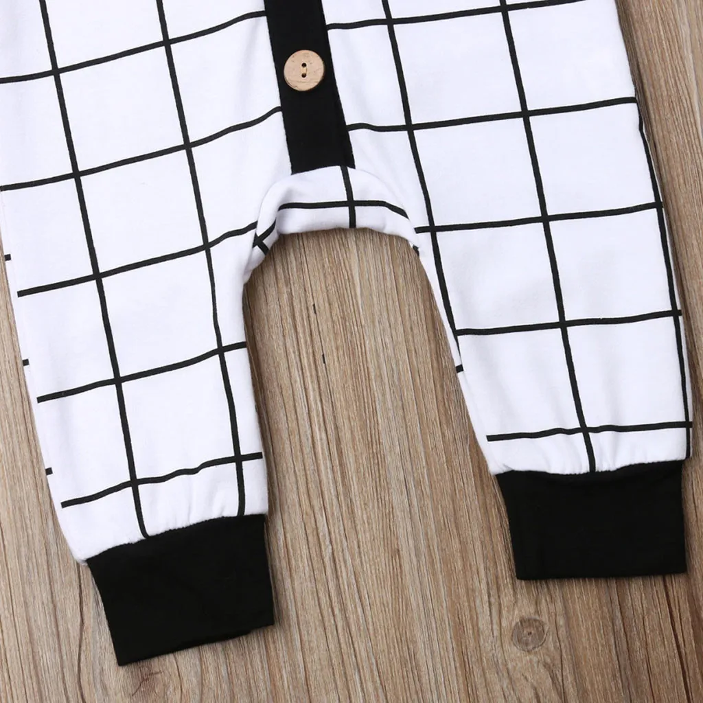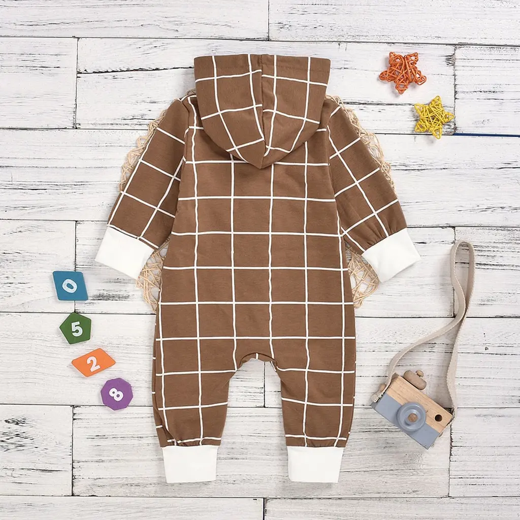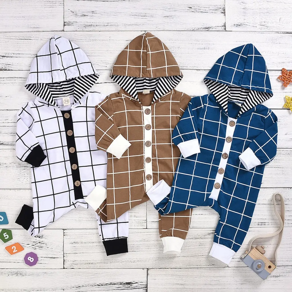 Детский клетчатый комбинезон с капюшоном для маленьких мальчиков, комбинезон в полоску, мягкая одежда