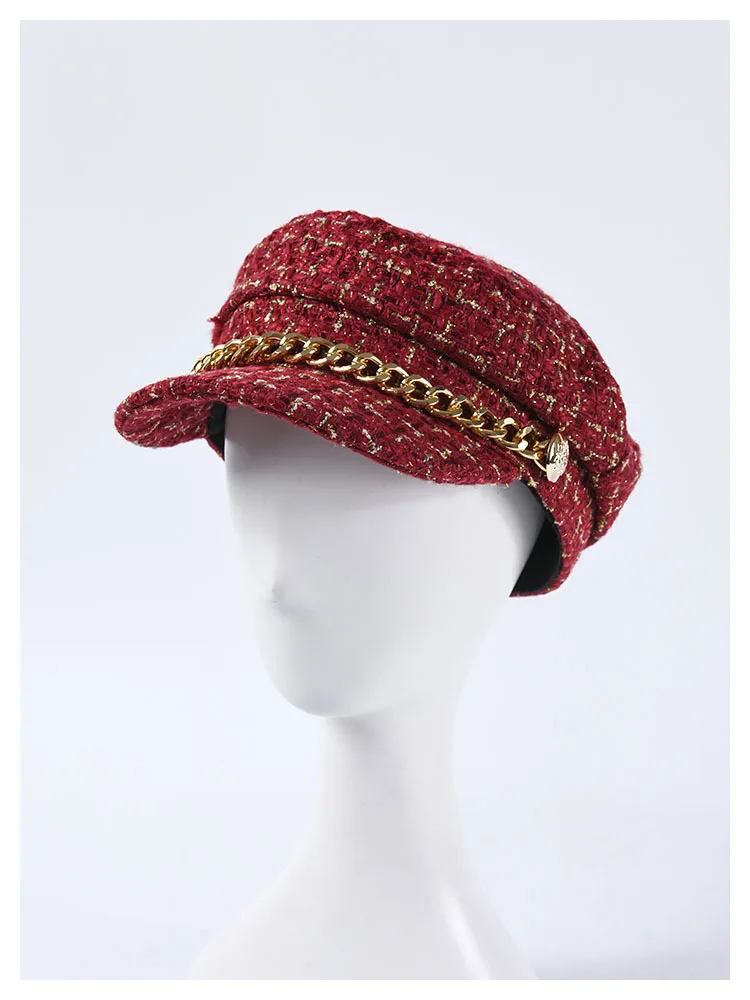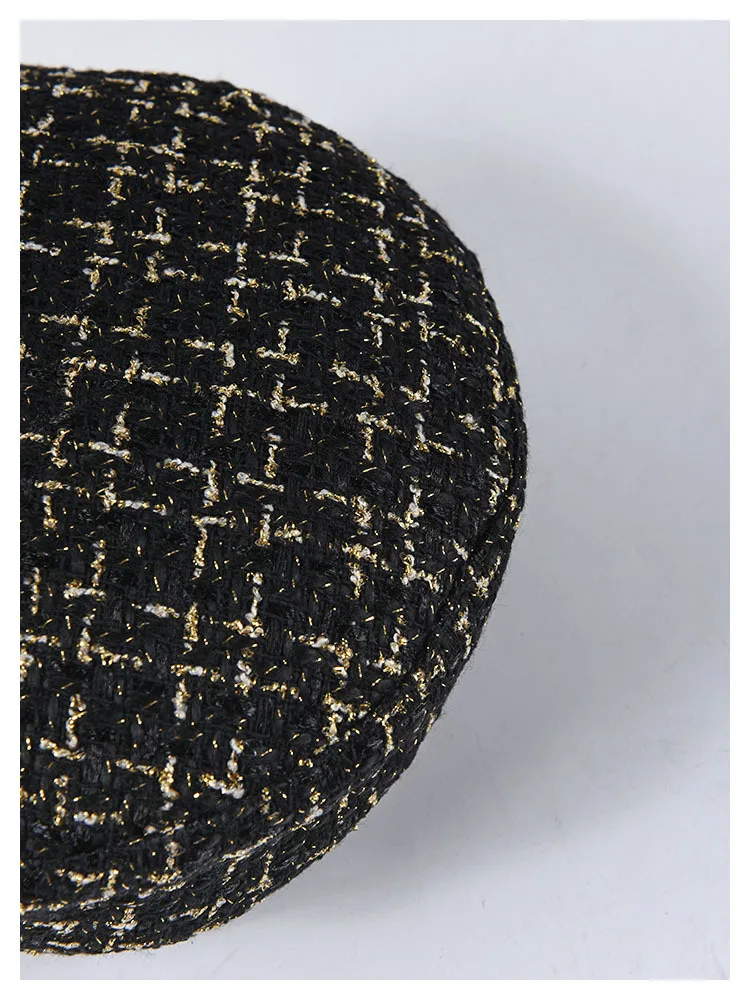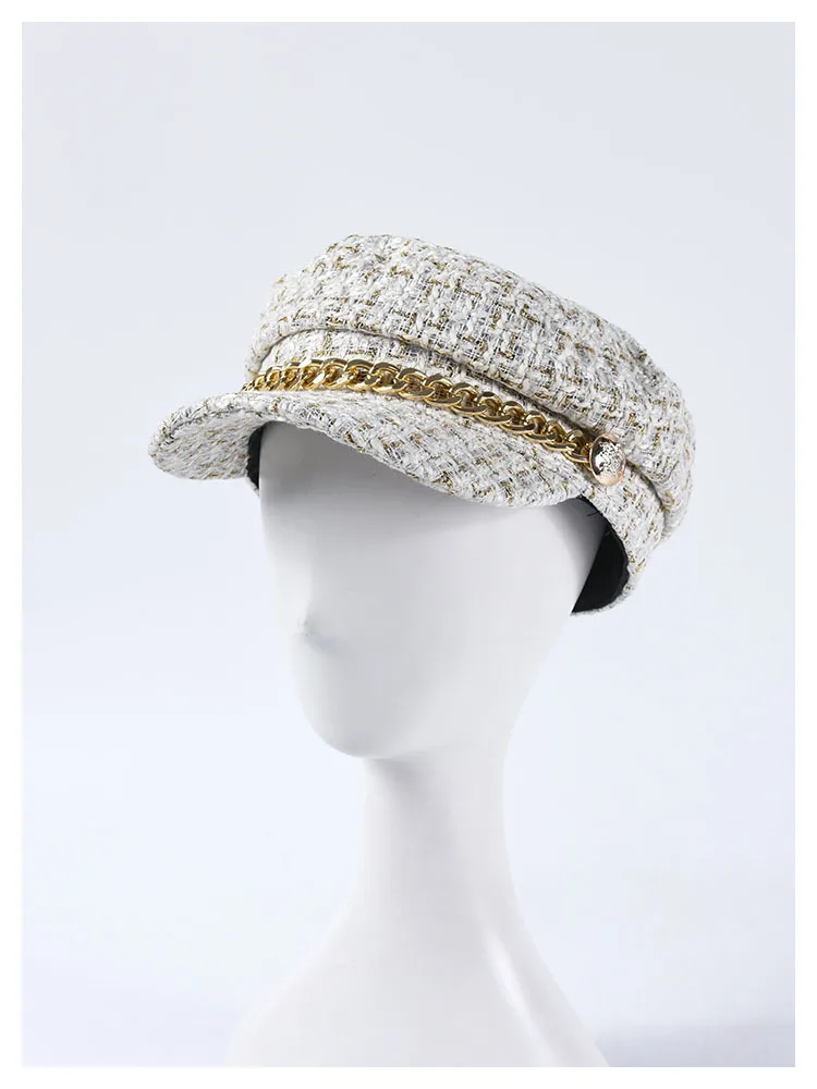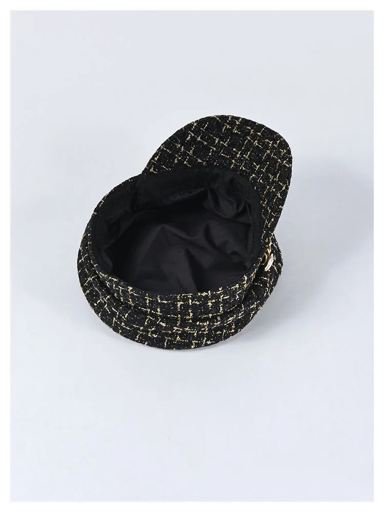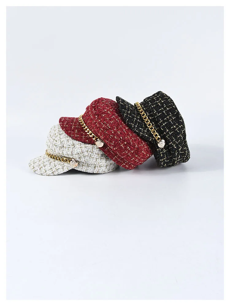 Женская вязаная кепка на плоской подошве, вязаная кепка в клетку из твида, модные шапки для девочек, Осень-зима 2019