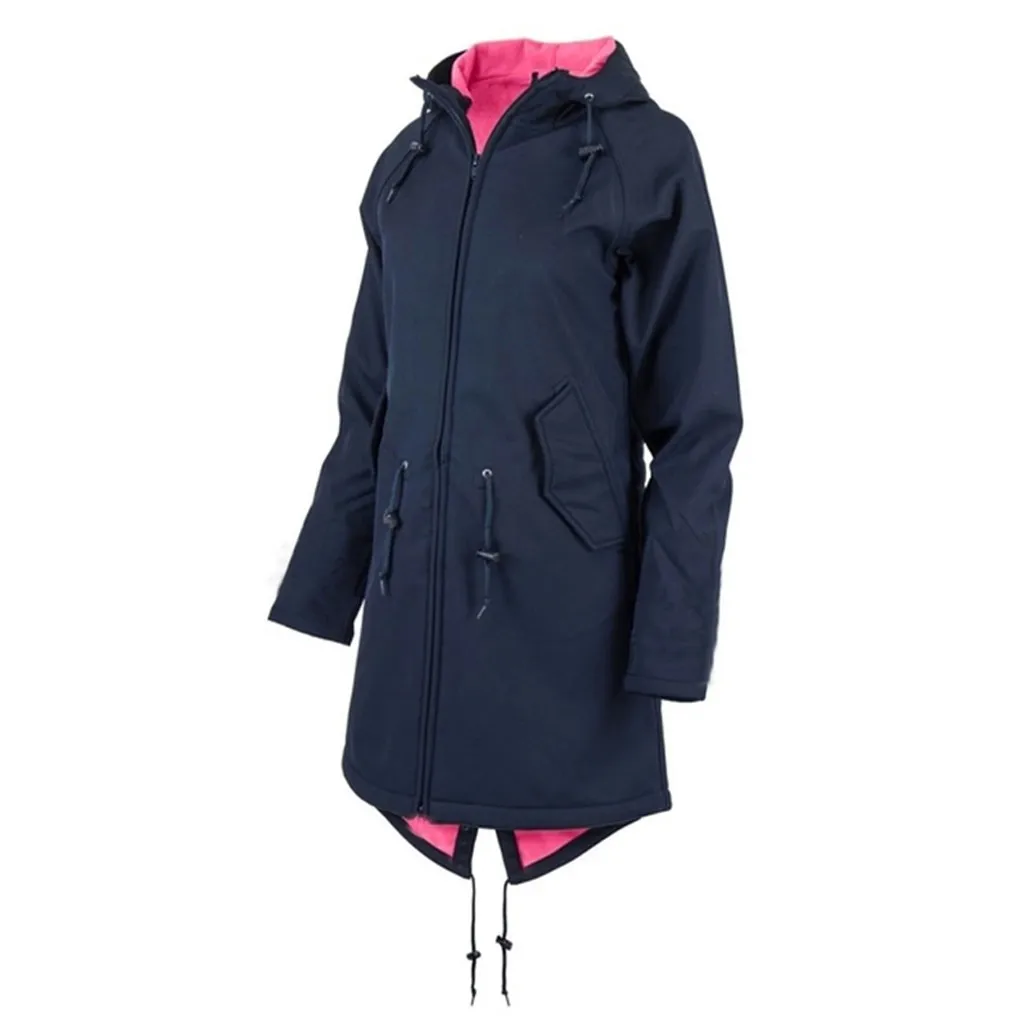 Женская ветрозащитная куртка Feitong, однотонная непромокаемая куртка, водонепроницаемая верхняя одежда с капюшоном, длинное пальто, ropa mujer, куртка для дождливой погоды