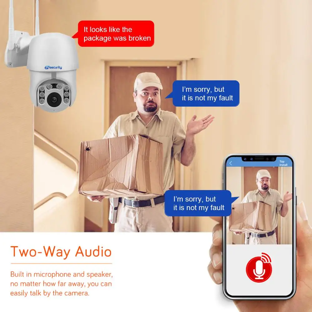 ZYsecurity наружный двойной светильник, купольная WiFi PTZ камераРазработан с простой настройкой 1-key WiFi функция подключения, для самостоятельной установки. Даже леди, старый мужчина или молодой человек могут использовать легко.![]()