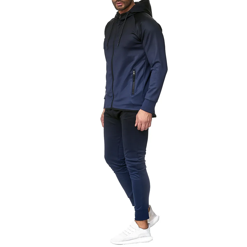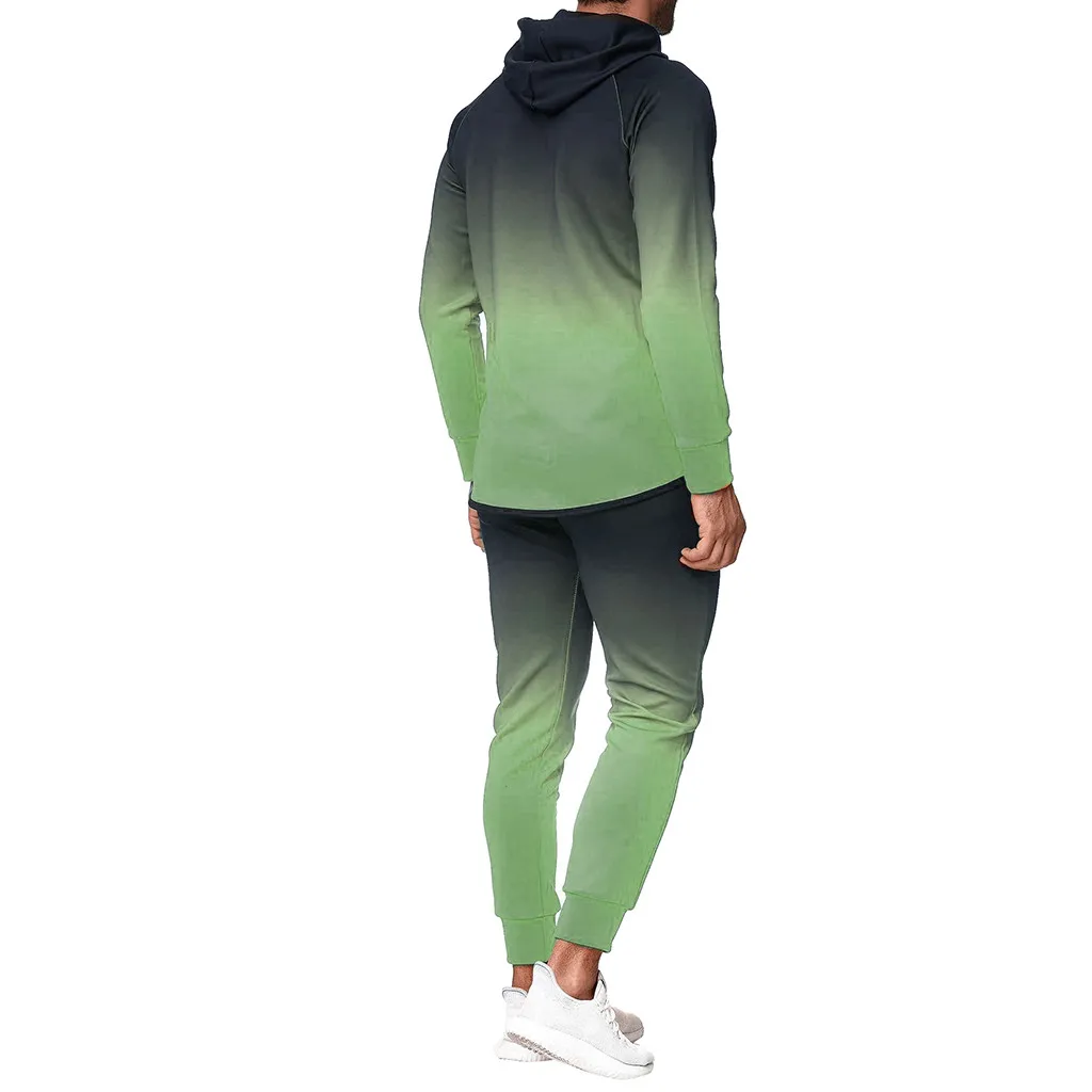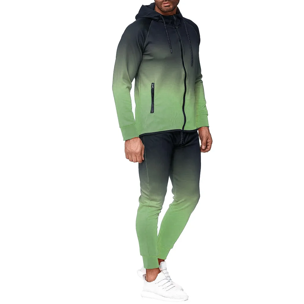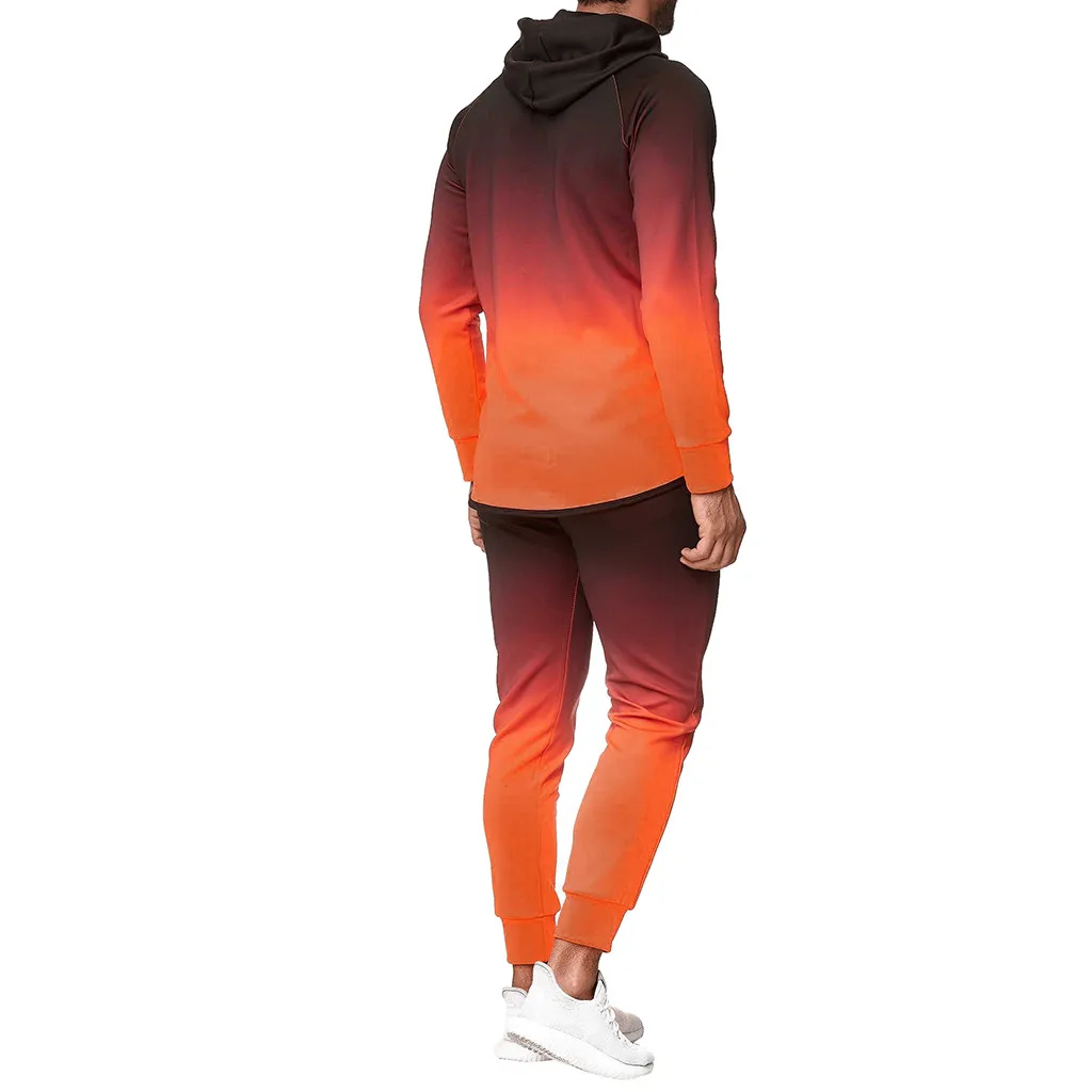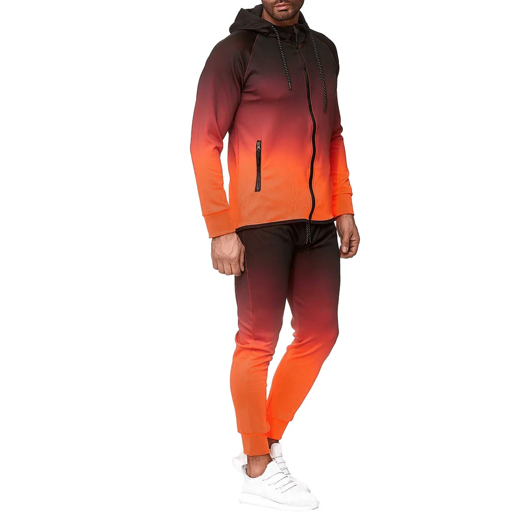 Mens Autumn Dyeing Zipper Print Sweatshirt Top Pants Sets Sport Suit Tracksuit