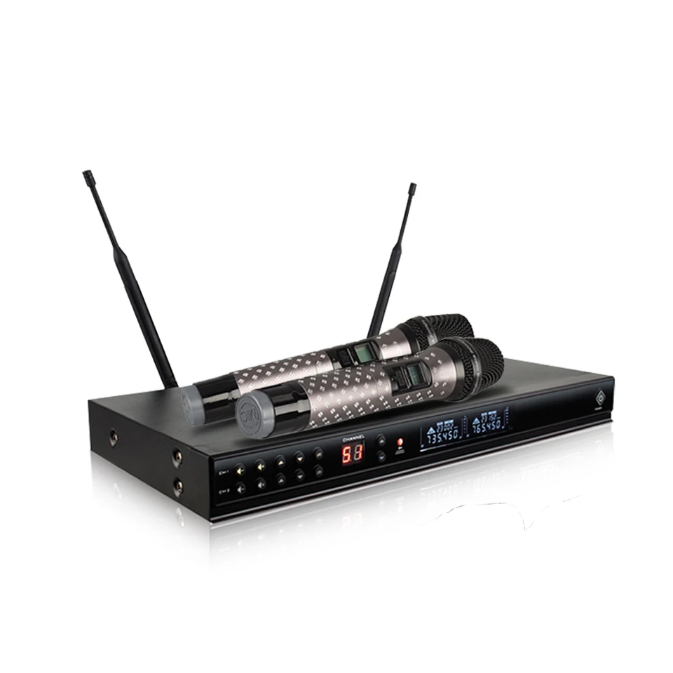 Особенности: 1. С улучшенной цифровой функцией ID pilot, полностью устраняет помехи и частоту 2. С использованием 23-уровень электронный регулятор громкости, простой в комплекте 3. Качество звука четкое и яркое, идеальное расстояние-50 метров. 4,200 наборов дополнительных точек частоты, сильная способность анти-помех 5. Приемник с индикатором использования батареи излучения, Универсальный микрофон руки 6. С функцией возврата подавления воя, он может эффективно уменьшить свист 7. Подходит для большой и небольшой сцены, конференц-зала, KTV комнаты и т. Д.