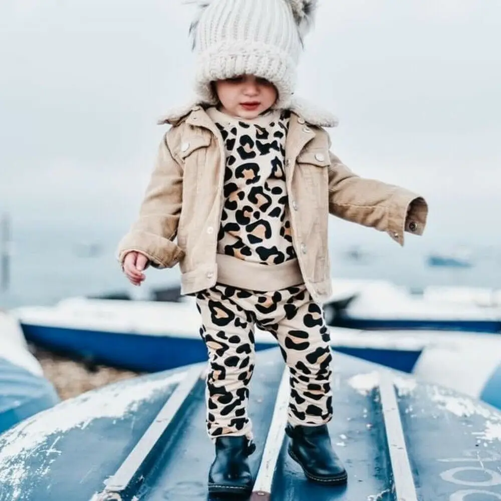100% новый и высокое качество Модный Леопардовый Костюм из 2 предметов для маленьких девочек! Модный дизайн, милый Размер: 80 90 100 110 120 Цвет: как на картинке Материал:100% хлопок Посылка: 1 Топ и 1 штаны Обратите внимание: если ваш ребенок пухленький, мы рекомендуем выбрать больший размер, спасибо. Таблица размеров: