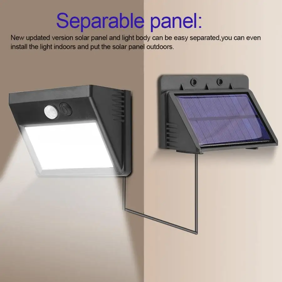 Этот солнечный светильник автоматически включается, когда он определяет движение человека, проезжавшего через ваш дом или идущего к вашей двери, обеспечивая безопасность вашей семьи и защищая вас от опасности вокруг вашего дома или сада. Солнечная панель обеспечивает более высокую эффективность передачи солнечной энергии для быстрой зарядки. Водонепроницаемый дизайн защищает ваш солнечный светильник от любой страшной погоды. 3 режима освещения находятся под вашим контролем. Разделяемая панель, вы можете даже установить светильник в помещении и поставить солнечную панель на открытом воздухе.