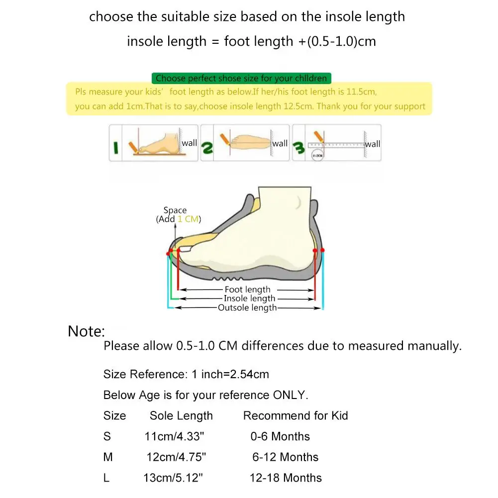 L: Длина подошвы: около 13 см/5,12 дюйма; рекомендуется для детей: 12-18 месяцев