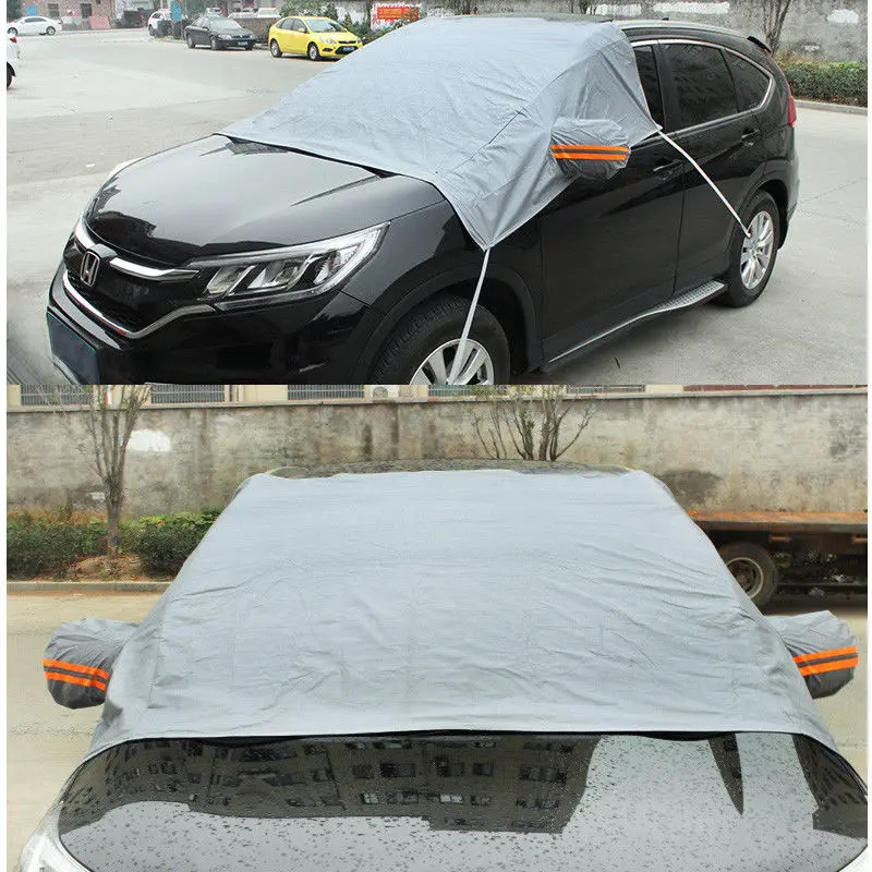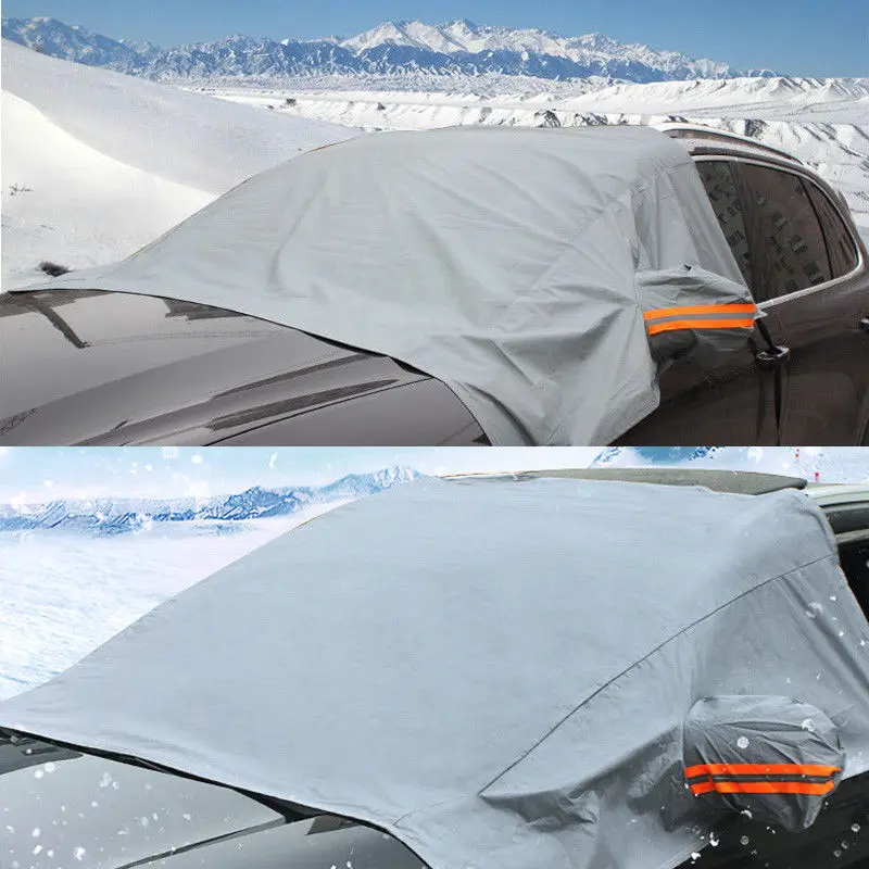 С крышками зеркал. Идеально подходит для лобового стекла переднего автомобиля. Легко устанавливается и снимается.