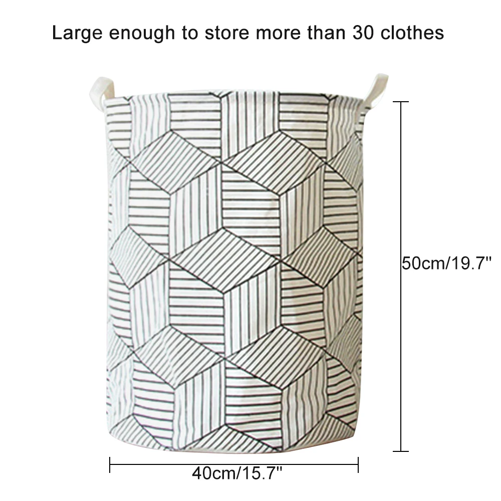 Хлопковая ткань Ramie: она изготовлена из 100% хлопковой ткани Ramie + водонепроницаемого полиэтиленового покрытия, чтобы сохранить сухость и долговечность | большой размер: 19.7H × 15. 7D дюймов (50 × 40 см), достаточно большой, чтобы хранить более 30 одежды | дизайн геометрии: стиль геометрии может быть более подходящим для вашего стиля комнаты | сохраните вашу комнату: наша корзина для белья складная, Которые могут быть быстро сложены, когда не используются, чтобы сэкономить больше места для вашей семьи | многократное использование: бункеры для стирки могут использоваться в качестве хранения одежды, домашнего текстиля, хранения игрушек, хранение детских товаров и хранение домашних животных.