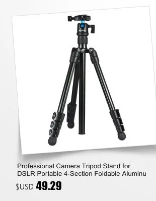 Описание продукта: Высокое качество: Изготовлен из высококачественного алюминиевого сплава трубки и АБС экологический пластик. Максимальный диаметр составляет около 25 мм, ножка ноги изготовлена из мягкой резины и вращается, чтобы лучше отрегулировать пол не статично. И мы предоставляем 1 год гарантии. Профессиональный: 3-сторонний выход цилиндрической головкой с quick release plate, вы можете делать фотографии под любым углом с горизонтальном и вертикальном положении; 360 градусов панорамирование, точный панорамы могут быть легко гармоничной. поворотные фиксаторы с системой анти-вращения обеспечивают более удобную обработку ног. Регулируемый: 4-секционный ноги и центральная колонка, высота вы можете связаться с нами и цена может быть от 18in для 55in) и максимальная универсальность. Легкий вес: это всего около 2, 6 фунтов (1,18 кг), портативный, специально для путешествий. Дизайн гуманности: в верхней части каждой ноги есть мягкий пеноматериал для лучшего захвата. И есть крючок с центральной колонной, который позволяет повесить дополнительный вес для повышения стабильности. Также с сумкой для переноски позволяет легко носить с собой. Особенности: Фиксатор регулировки угла ноги обеспечивает одиночную регулировку каждой ноги. 4-секционный Колонка ногу с quick release замки для удобной работы ногами, которую вы хотите высоту при съемке. Центральная ось перевернутой функции обеспечивает самую низкую съемку. Оснастите стальным коромыслом, вы можете отрегулировать головку во время съемки. Дизайн ручки для подъема оси, более удобный в использовании. Нескользящими резиновыми ножками. Портативный карман позволяет легко носить с собой. Лучший выбор для зеркальной камеры в вашем путешествии. Технические характеристики: Материал: трубка из алюминиевого сплава + АБС экологический пластик Тип головки: головная панель Длина в сложенном виде: 50 см/19,7 дюйма Максимальная высота штатива: 140 см/55 дюймов Макс. Диаметр трубки: 23 мм/0.9in Количество колонки: 4 секции Грузоподъемность: 5 кг/11.02Lb Вес изделия: 1,18 кг/2.6Lb Посылка Размер: 12*12*51 см/4,7*4,7 * 20.08in Посылка Вес: 1,6 кг/3.52Lb Посылка список: Q-111 штатив x1 Сумка для переноски штатива x1 Оригинальная упаковочная коробка x1