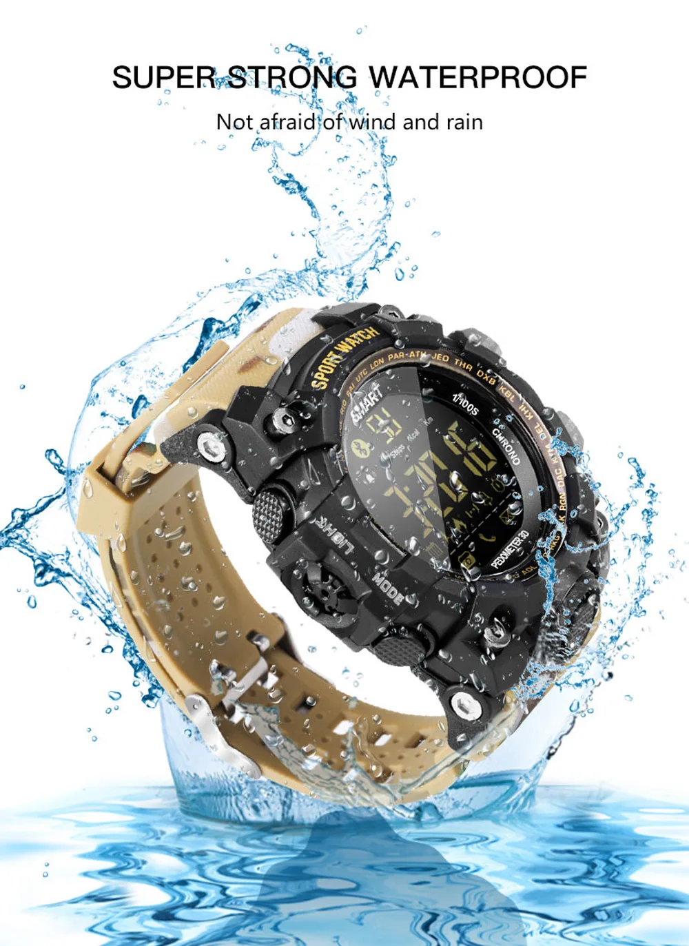 Он имеет двойную структуру с жесткой внутренней и жесткой структурой, чтобы адаптироваться ко всем видам жестких условий. Светящийся циферблат, экран никогда не останавливается 5 АТМ супер водонепроницаемый, не боясь ветра и дождя. Нормальный режим ожидания в течение 8 месяцев, режим энергосбережения может быть продлен на 12 месяцев. Можно заряжать: дольше использовать время и время ожидания. Push-сообщение: он покажет вам последние сообщения, никогда не пропустите важные вещи. Удаленное Фотографирование: часы могут удаленно управлять телефоном, чтобы делать фотографии.