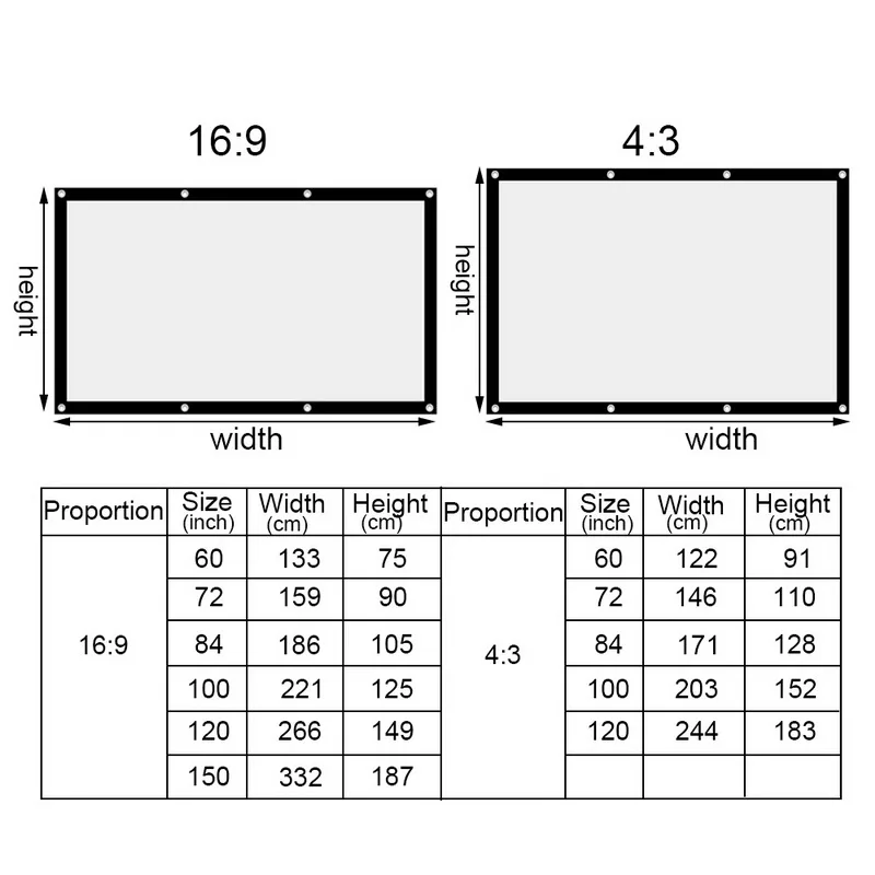 <Анти-складки> проекционный экран сгущен и гладкий, не мнется в сложенном виде или не измельчается. Вам не нужно терять время, оставляя экран на несколько дней или глаживая его.