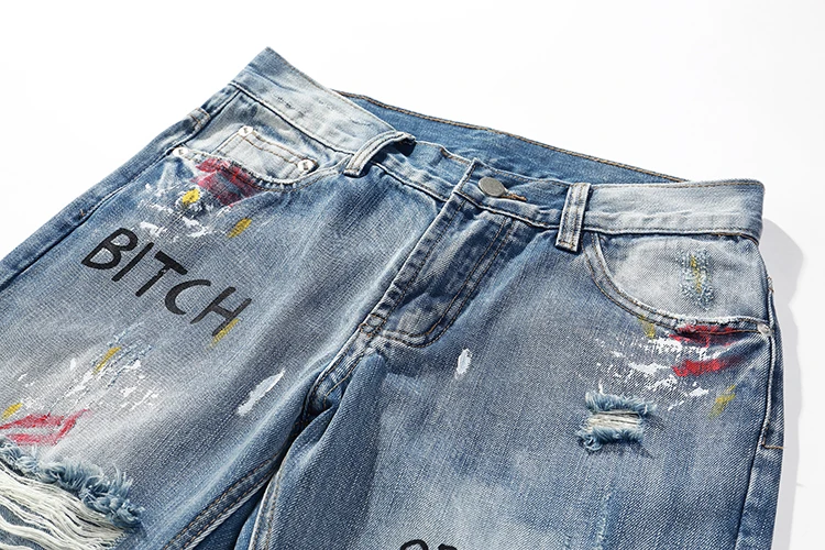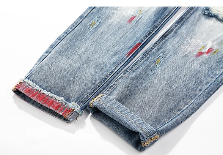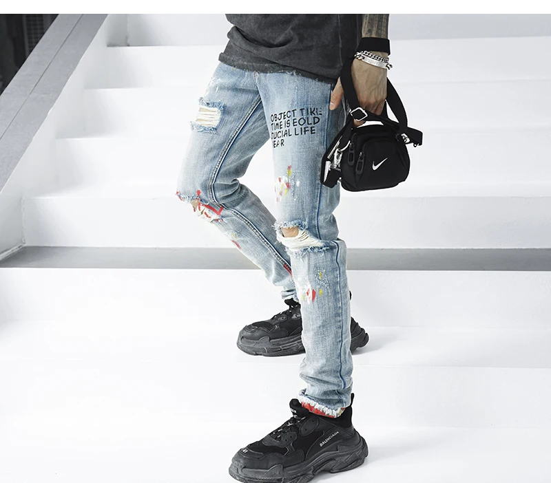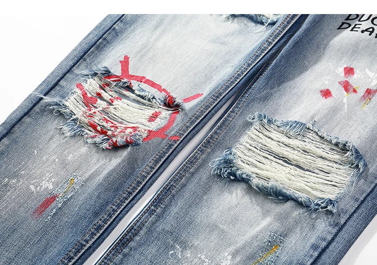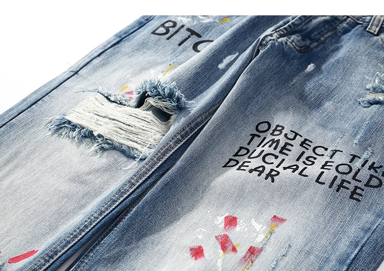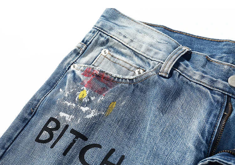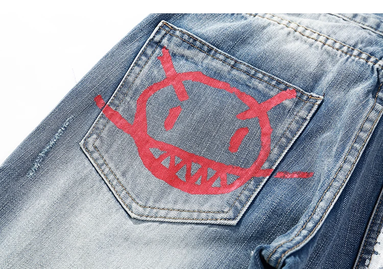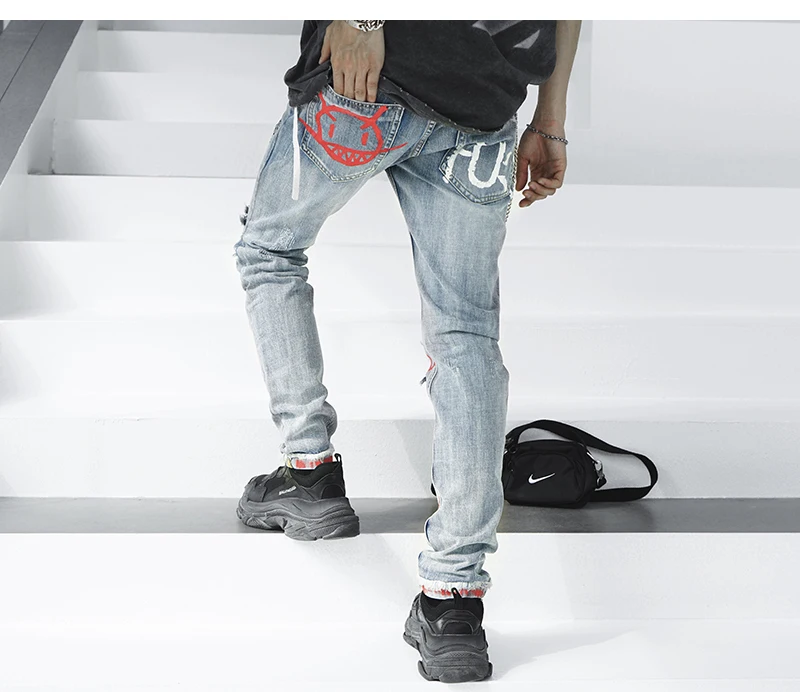 Мужские джинсовые брюки повседневные облегающие джоггеры с модным принтом