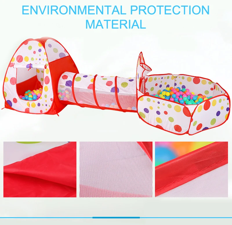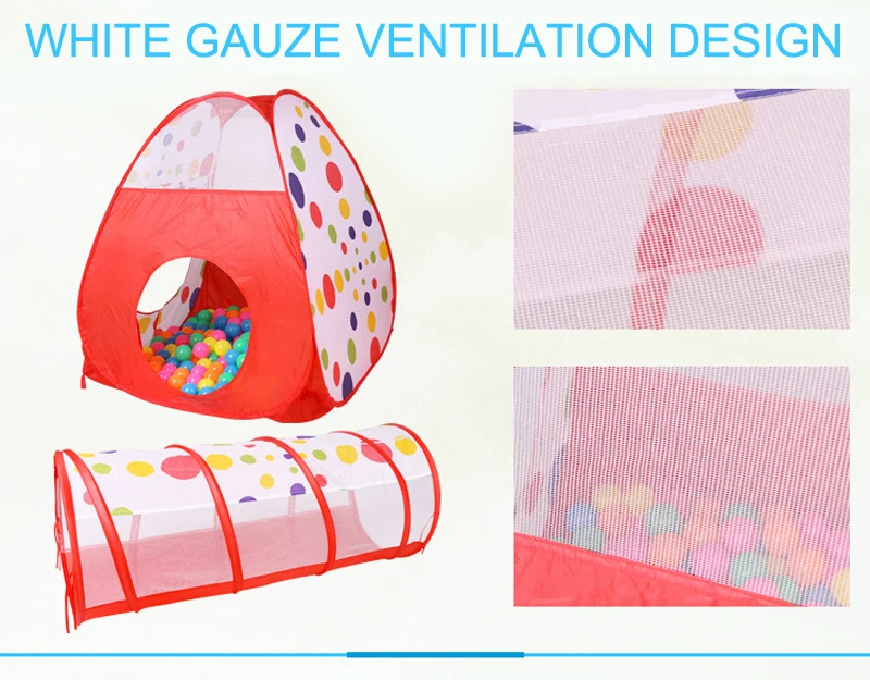 Product Name: Children's House Tent Product material: environmentally friendly polyester cloth + steel strip + mesh Product size: 120CM house tent +112CM tunnel +120CM shooting basketball pool Product packaging: exquisite polyester storage bag Adapt to age: 1-3 years old or older