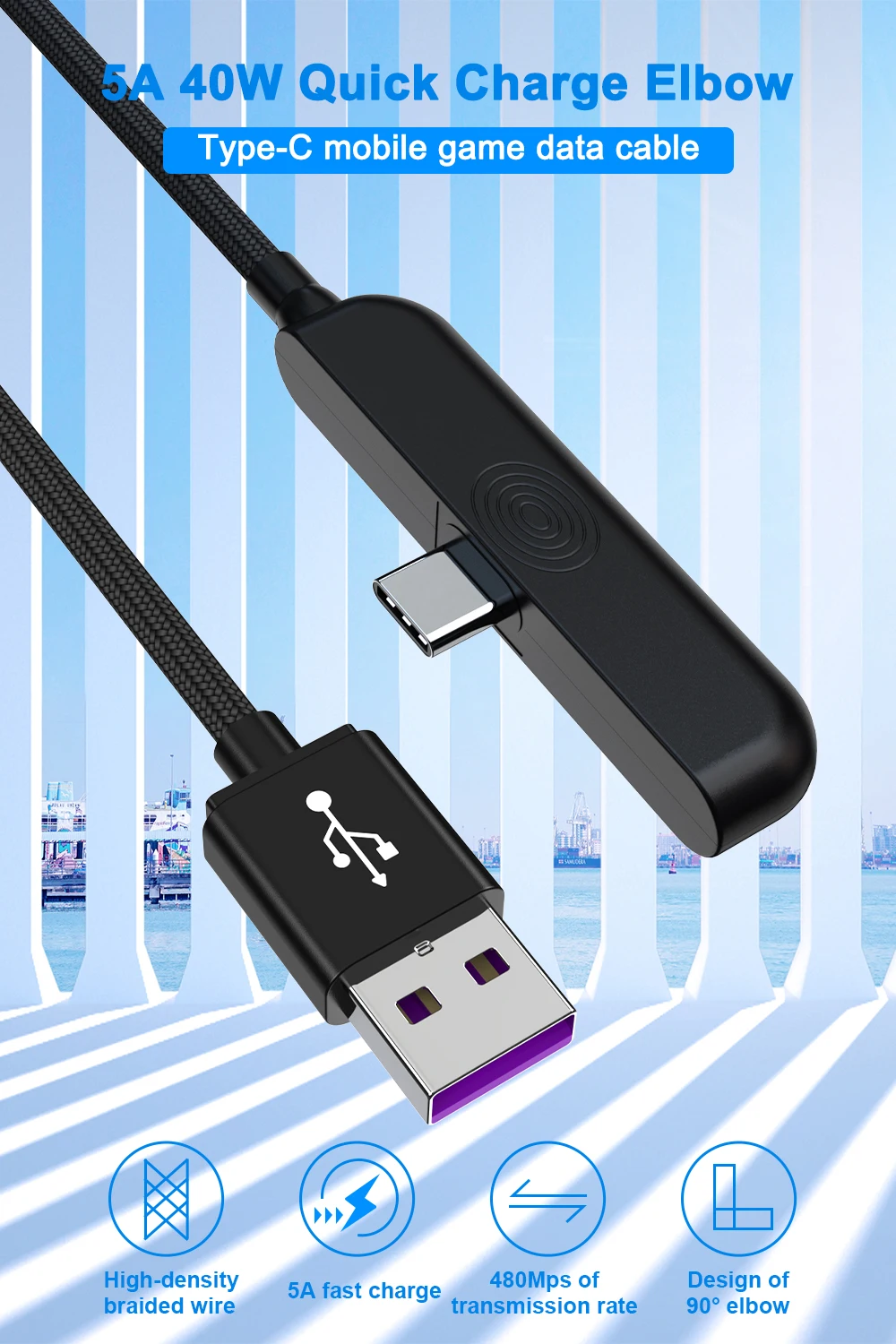90 градусов Usb Type C кабель 5A быстрое зарядное устройство провод Kabel Cabo Tipo для Huawei P20