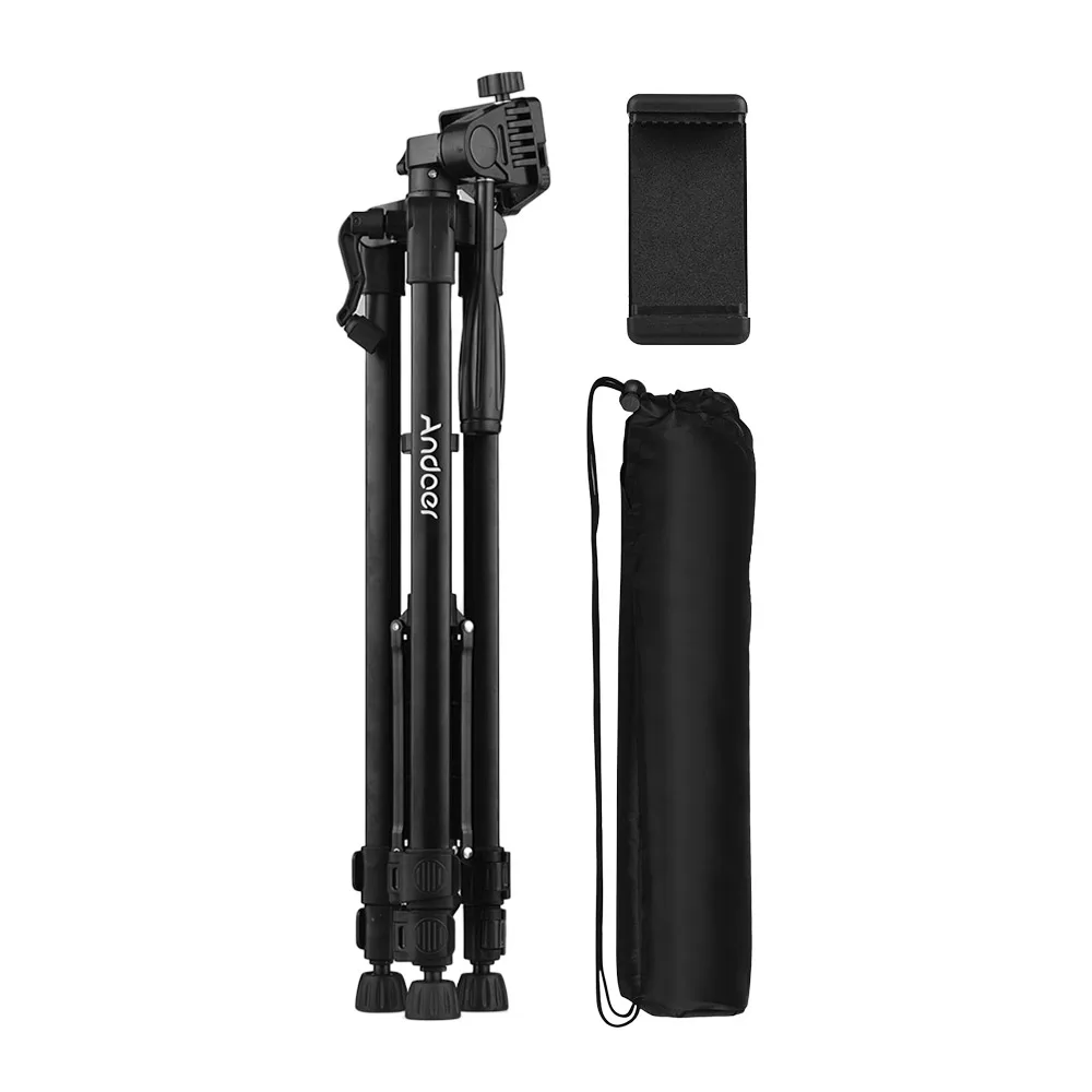 Портативный и легкий штатив:Изготовлено из легкого алюминиевого сплава, высота в сложенном виде 52 см и конструкция с портативной ручной ручкой, легко носить с собой.